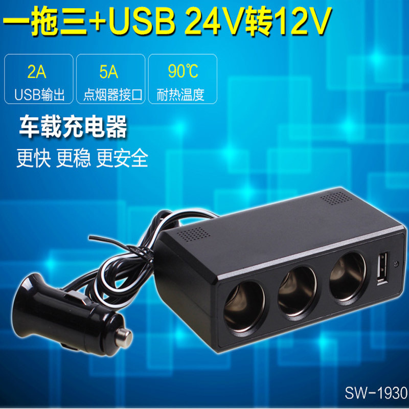 Wagon Private 24V-to-12V converter car with one-tow-three-cigarette lighter charger onboard socket transformer