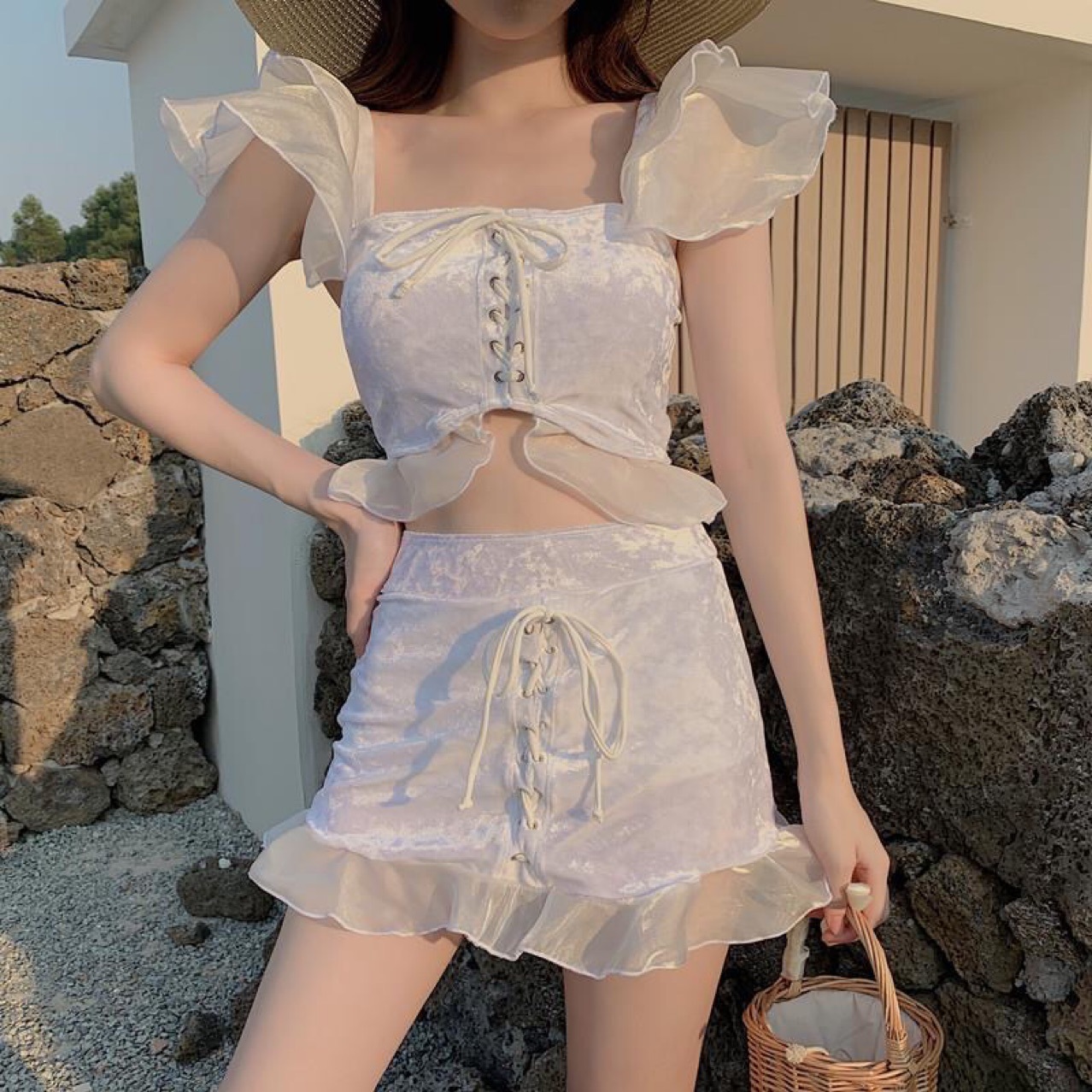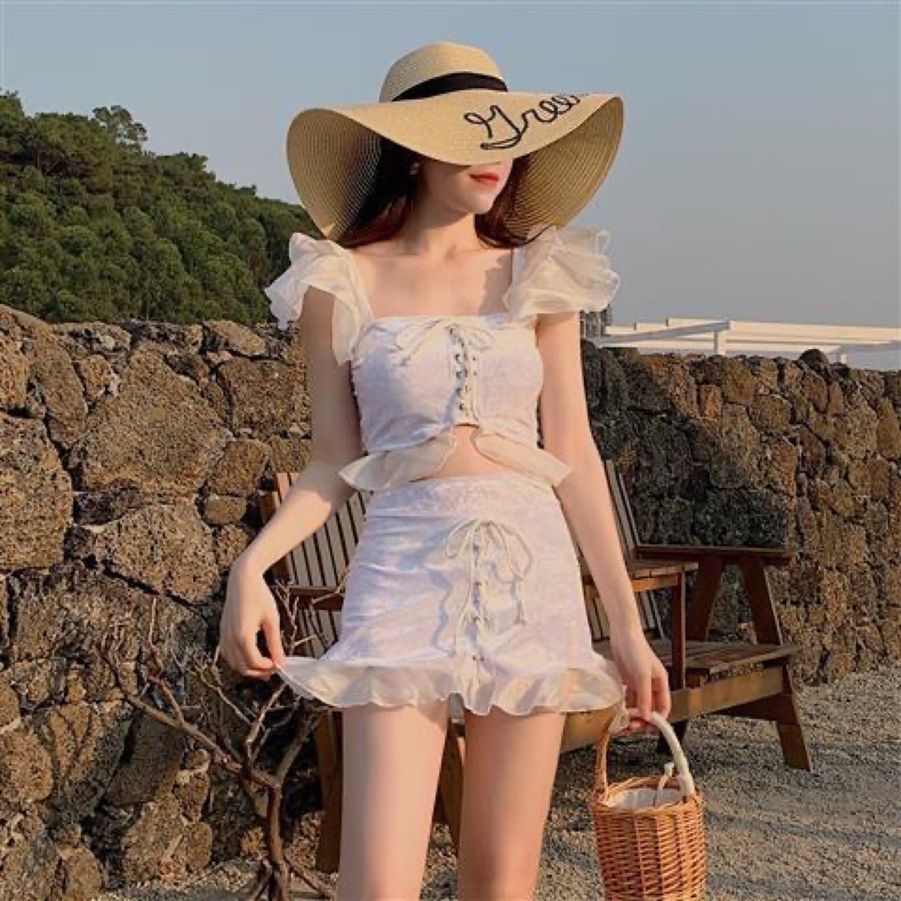 Swimsuit Girl 2021 New Fairy Fan Conservative Split Two-Piece Set Cover Belly Thin Student Girl Swimsuit Soaking Hot Spring