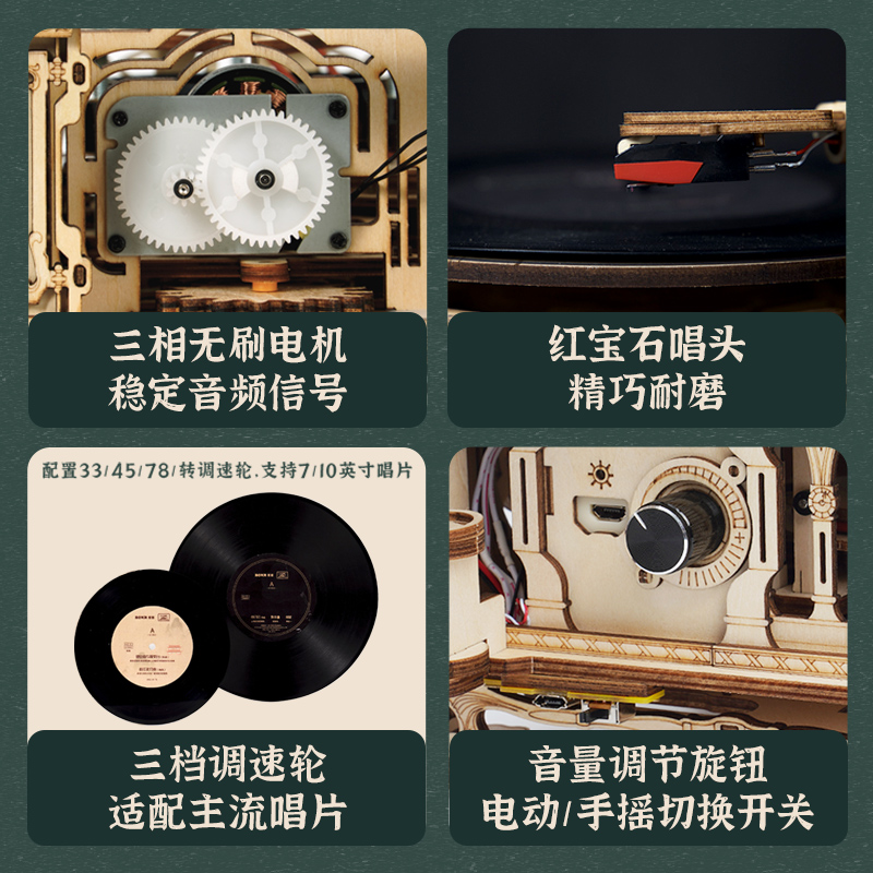 Ruo Ruoke handmade vinyl phonograph wooden puzzle adults high difficulty three-dimensional 3D wooden assembly model