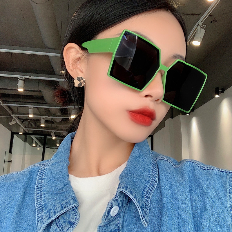 Korean version oversized frame green mesh red minimalist glasses polarized sunglasses female personality big frame men's face retro sunglasses