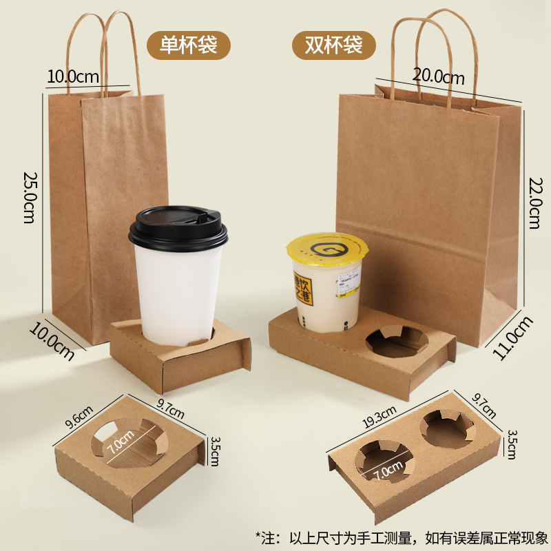 Coffee packaging bag milk tea drink kraft paper tote bag takeaway single cup double cup four cup custom logo box making