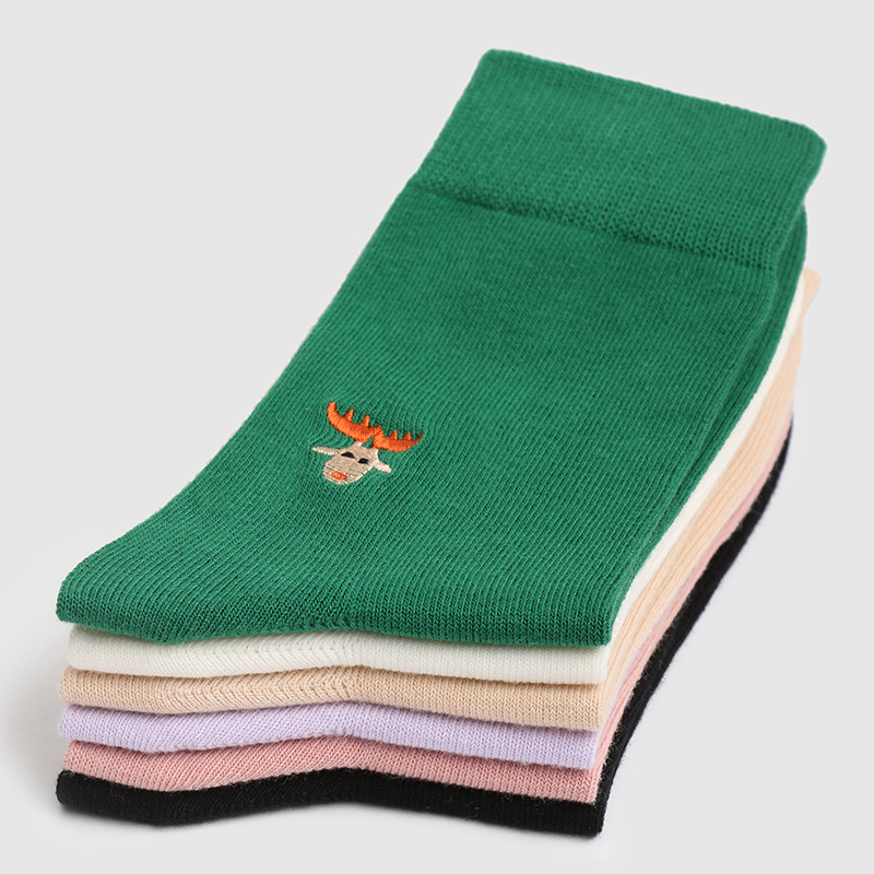 5 Double 55 Cartoon Girl Sox Sox Sox netting Red Cute Days of Breathable Pure Color Midbarrel Socks Autumn Winter
