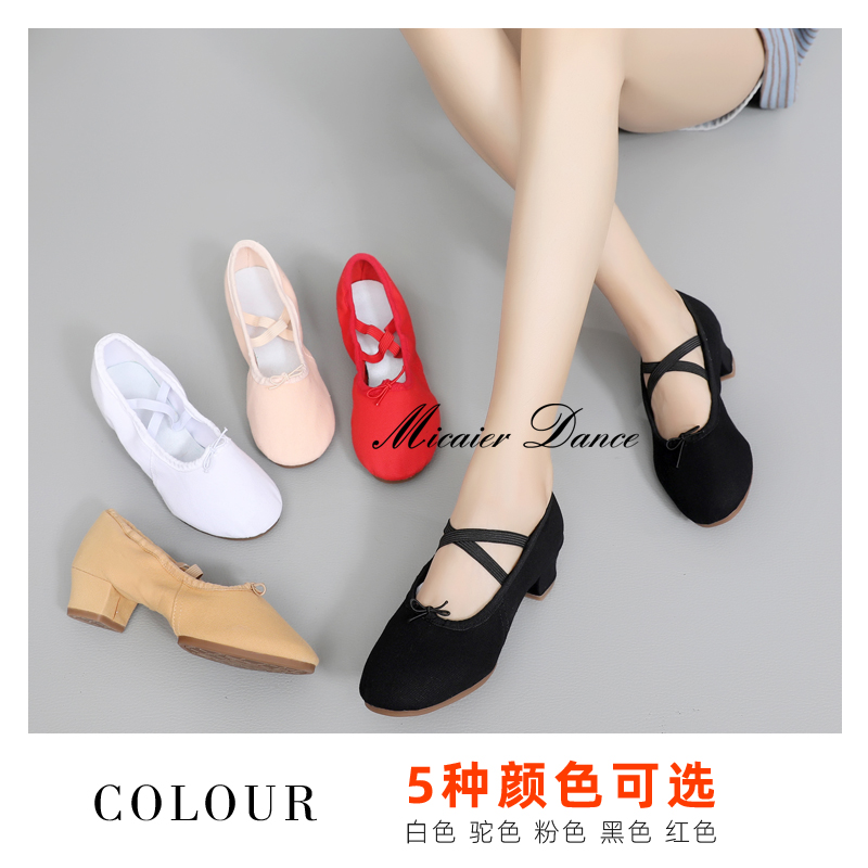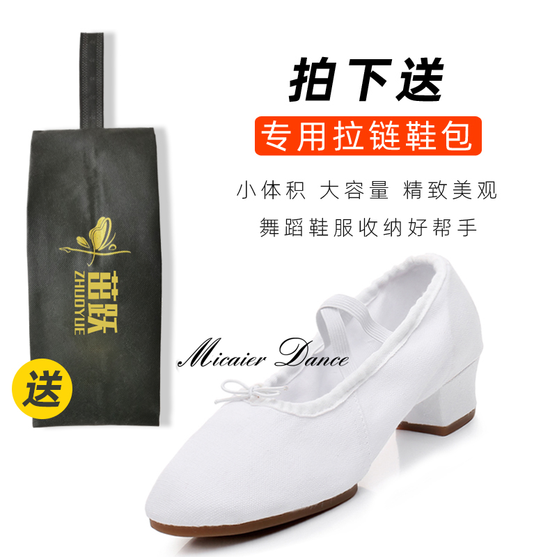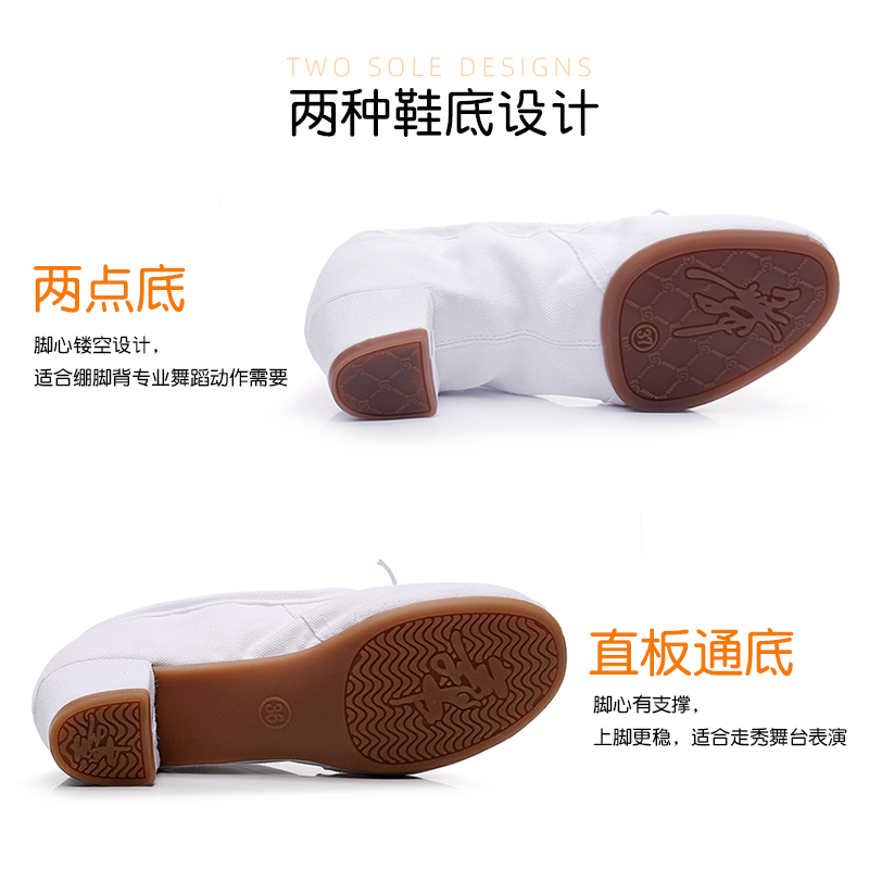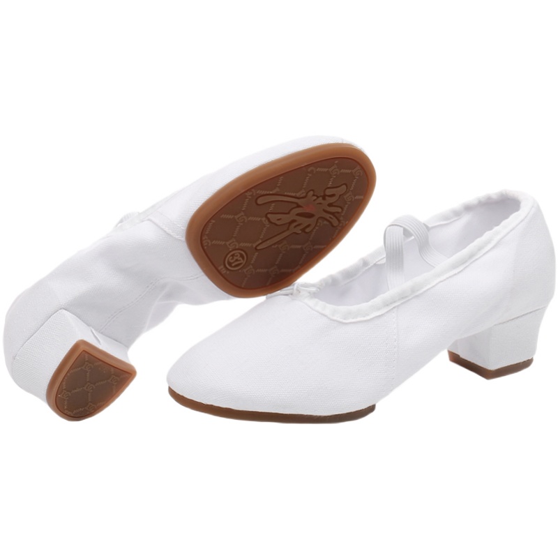 Outdoor white belt heel dance shoes women's soft-soled exercise shoes teacher folk dance shoes classical belly dance shoes ballet