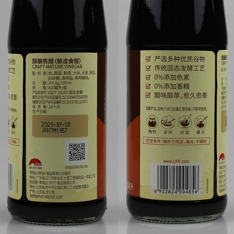 Li Jinkee Alcohol Brewed Vinegar 410ML Cool Mixed Stir-fried Vegetable Vinegar Aroma Mellow Solid Fermentation Dipping Point