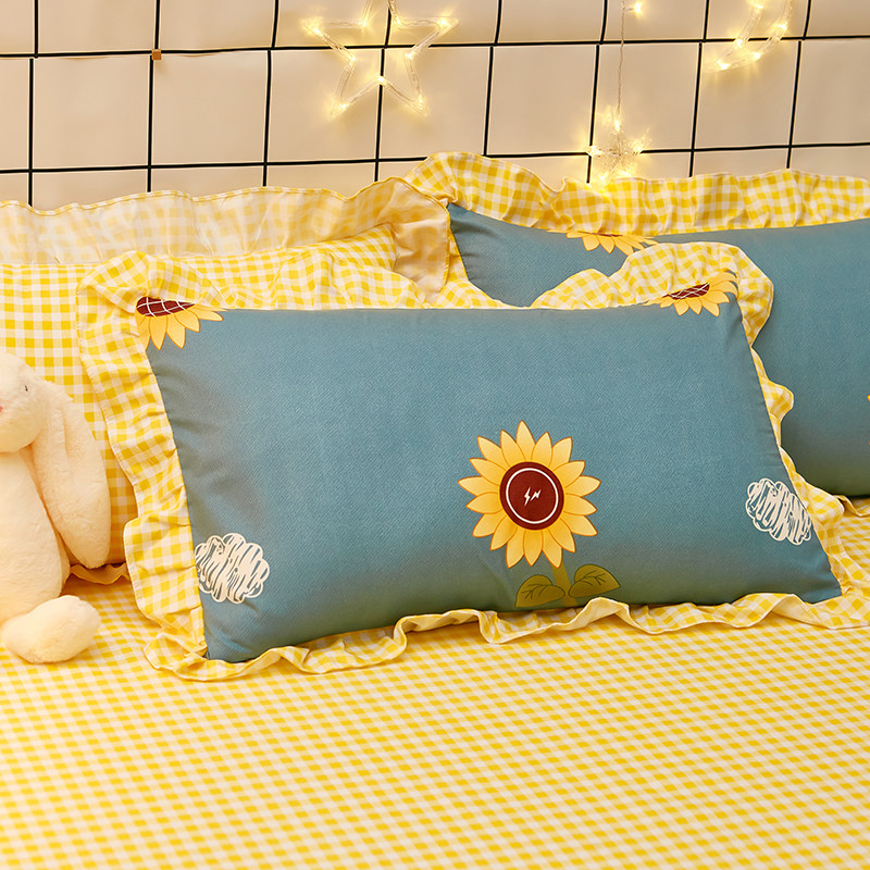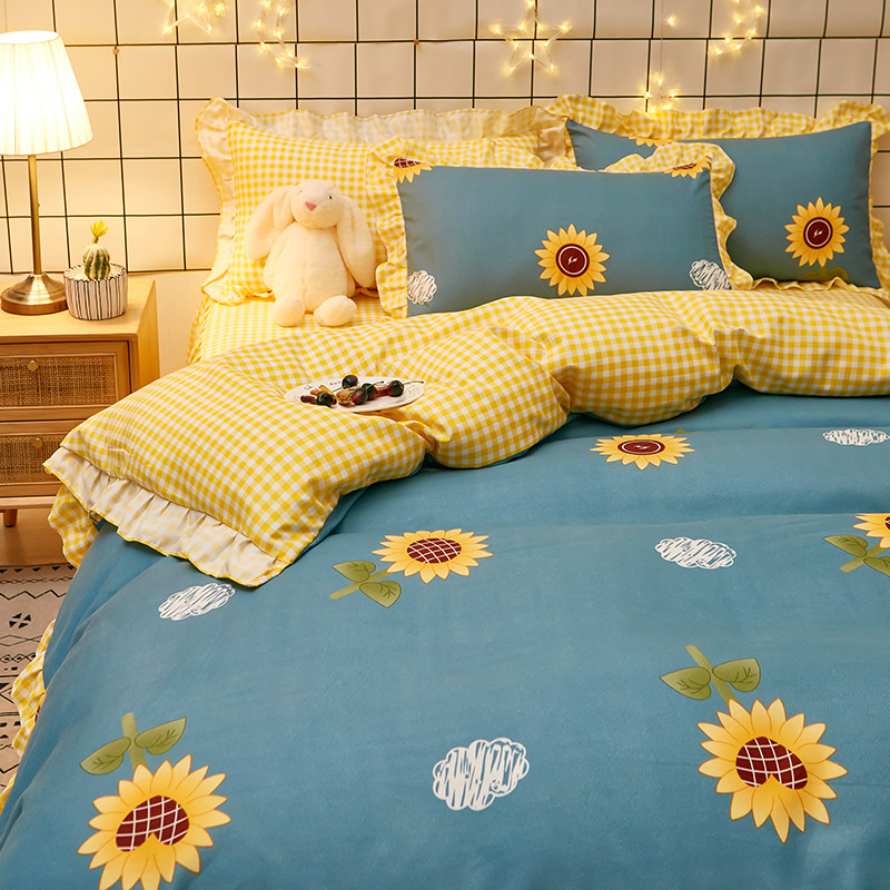 Idyllic wind sun Aoi ins girl heart princess bed skirt four-piece set spring and autumn lace quilt cover 1 5m1 8m sheets