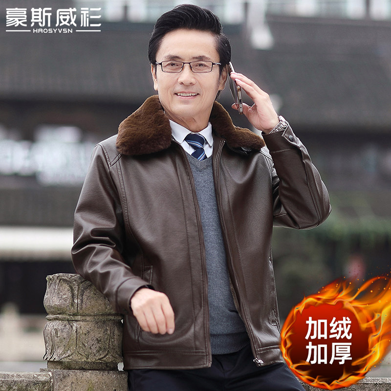 In winter, the elderly father dressed in men's velvet thickened leather winter warm leather jacket male middle-aged jacket