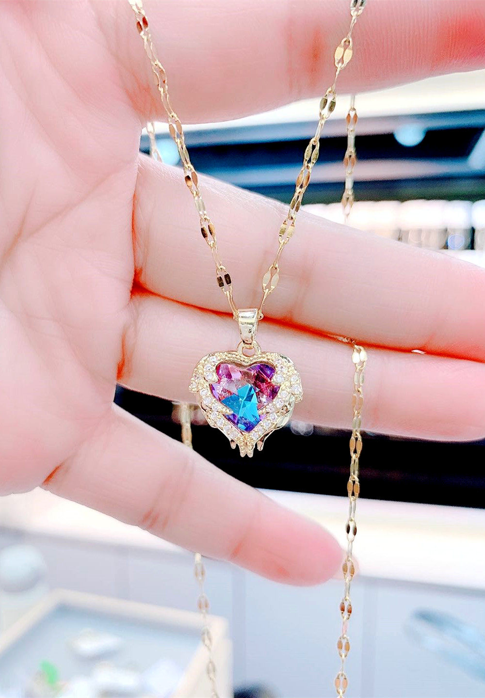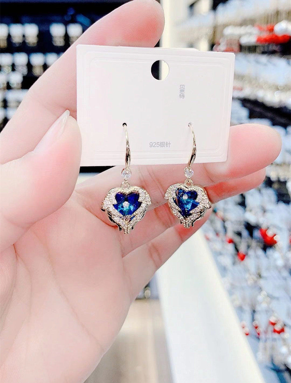 Purple Crystal Ocean Heart Earring Blue Crystal Ocean Heart of Heart of the Heart of the Heart of the Golden Ocean Necklace