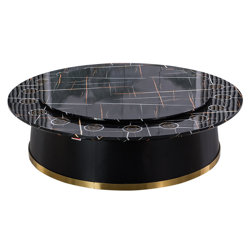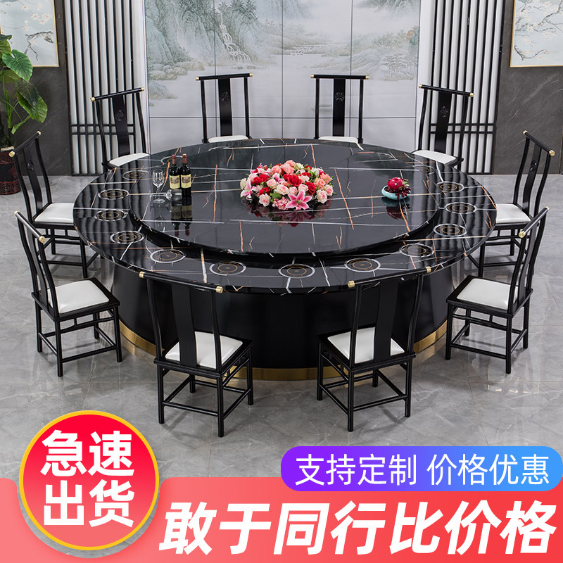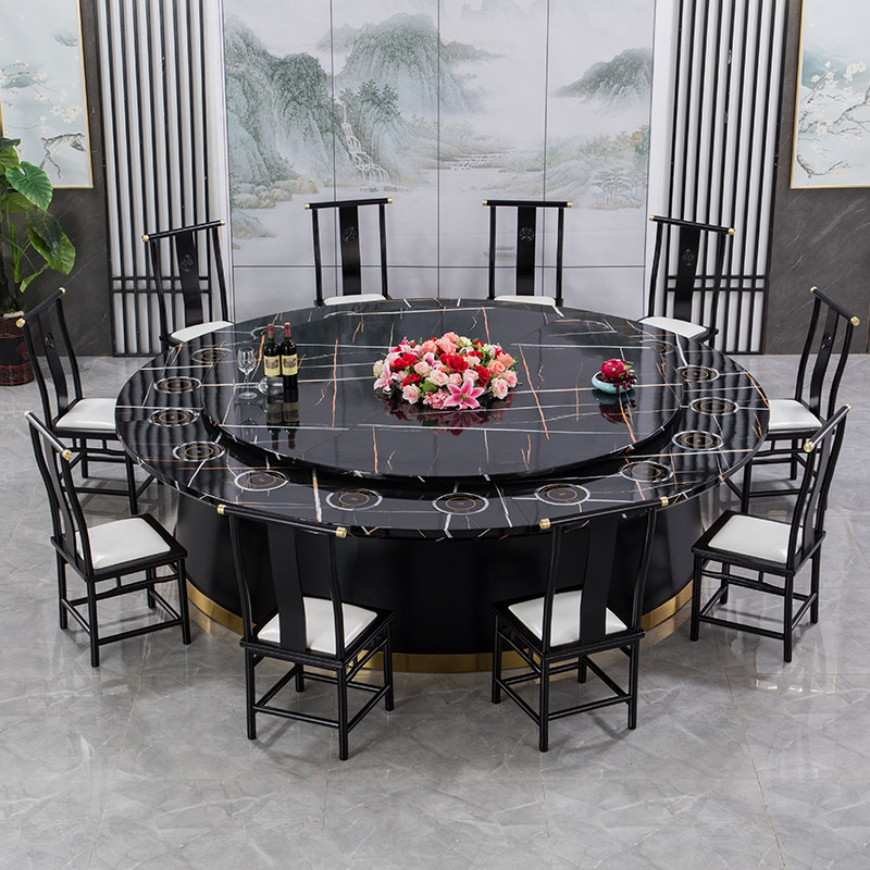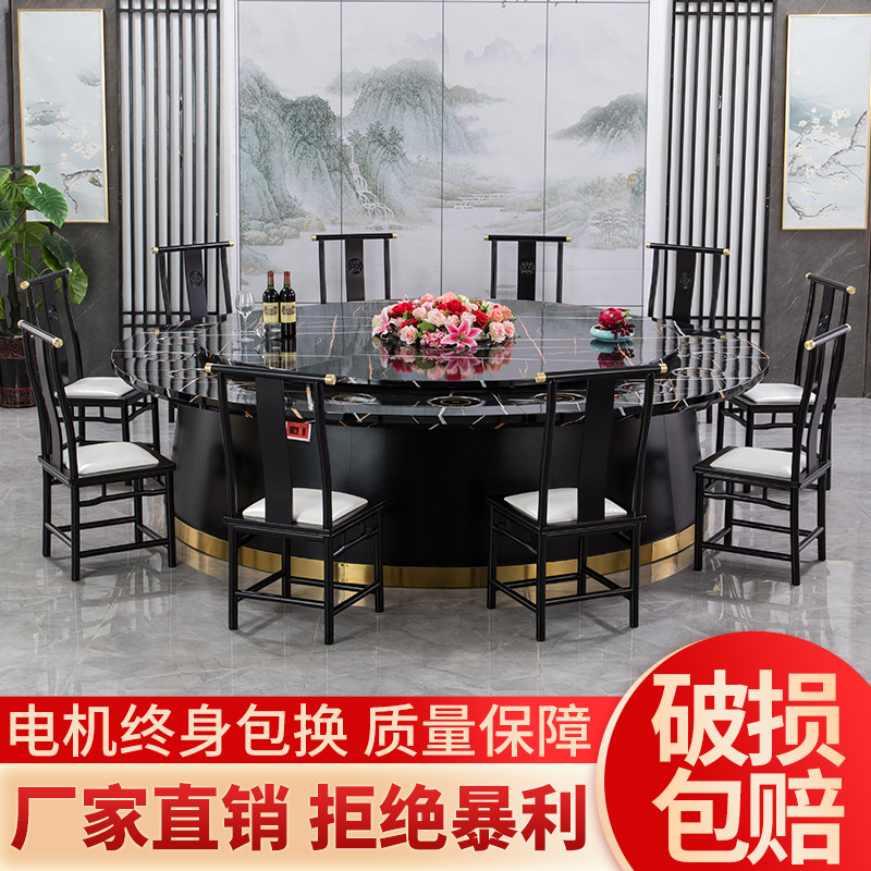 New Chinese light luxury electric dining table solid wood imitation marble large round table hotel restaurant banquet hall dining room with turntable