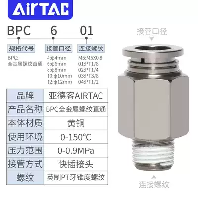 airtac refractory metal pneumatic threaded through connector BPC4 6 8 10 12 M5 01 02 03PC