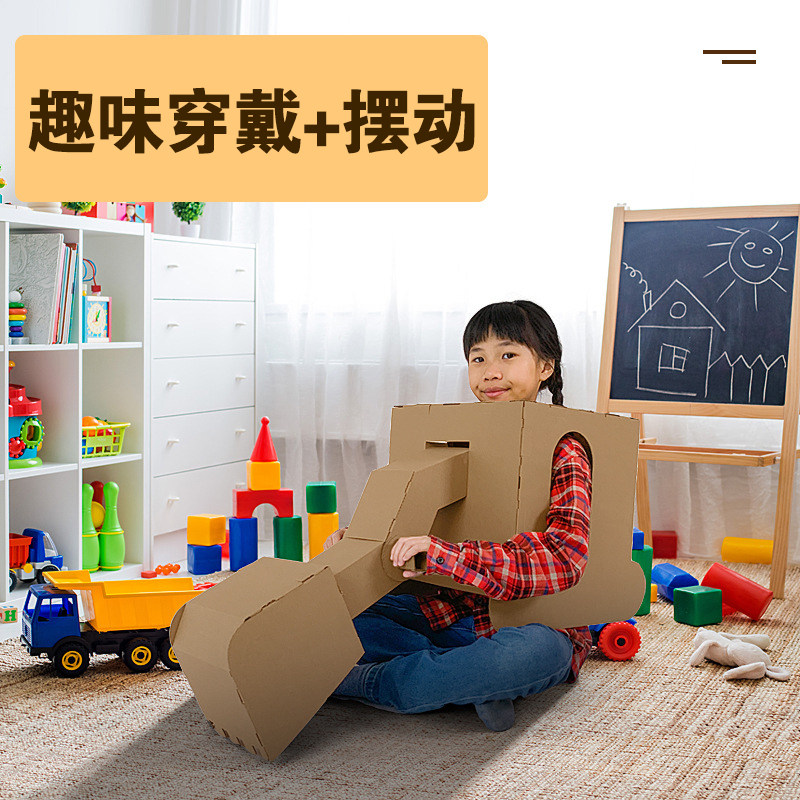 Children's toy wearable excavator model engineering car paper shell plate box handmade DIY production digger assembly