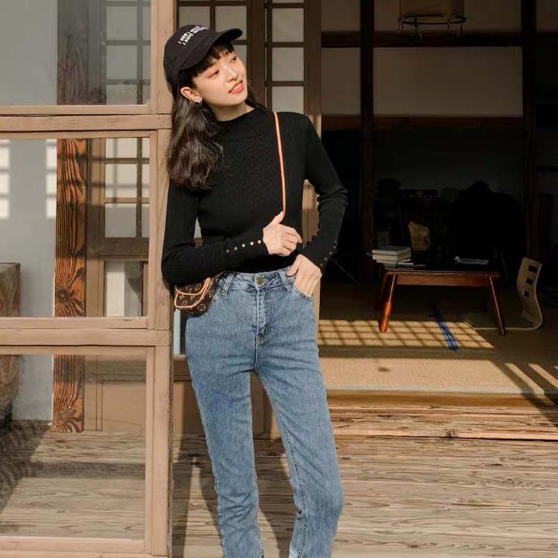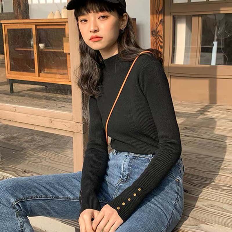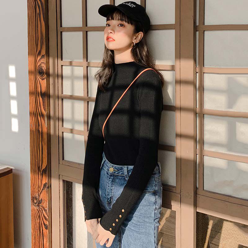 Semi-high collar sweater woman winter new body sweaters black bag core yarn-knitted sweatshirt bottom-shirt warm blouses