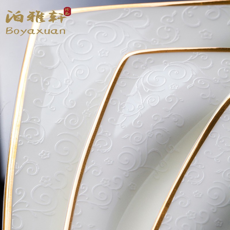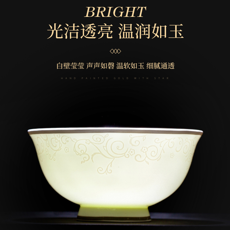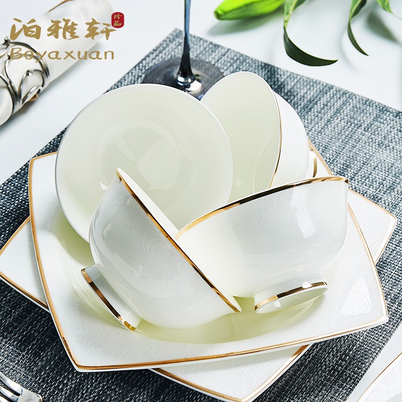 Porya Xuan Bowl suit Home Jingdezhen Ceramic bone porcelain tableware European style light and luxurious bowls disc Joe relocating gifts