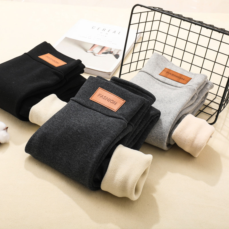 Autumn Winter Plus Suede Inner Lap Pants Woman Outside Wearing High Waist Winter Thickened Cotton Pants Large Size Code Integrated Suede Warm Elastic Narrow Footed Pants