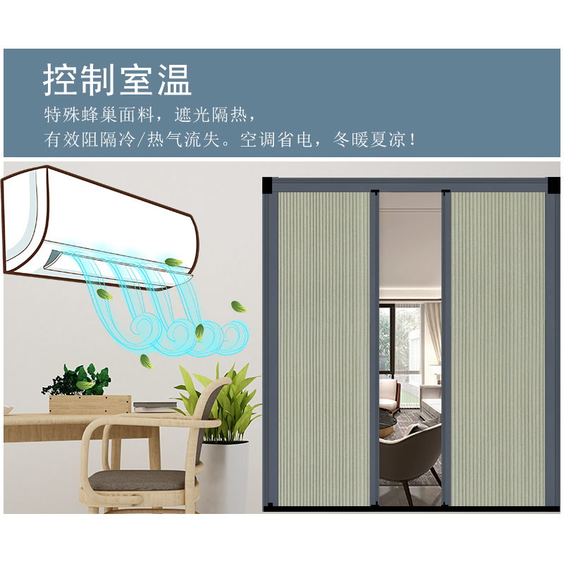 Honeycomb Door Curtain Push-and-pull Door Pure Color Push-pull Folding Fold Free of perforated mobile Kitchen Makeup Room Living-room Cubicle Customize