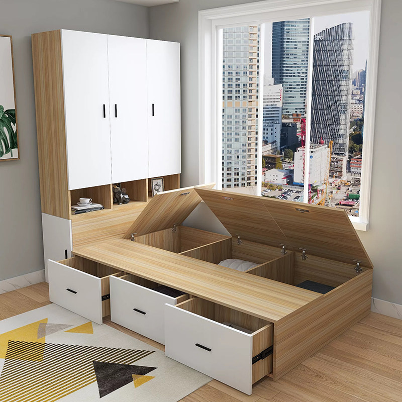 Tatami bed wardrobe integrated book bedroom plus vertical cabinet combination custom wall splicing with drawer storage 1 meter 35 bed