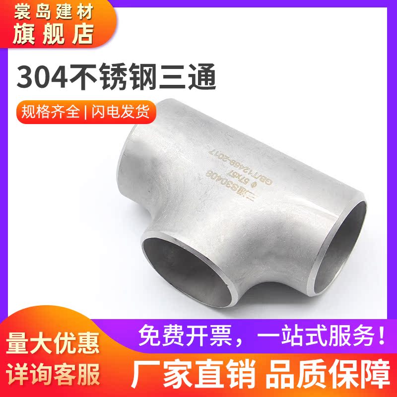 304 stainless steel three-way industrial grade isodiamee three-way pressing welding tee seamless punching tee three-way Phi 1 4-1 6 8