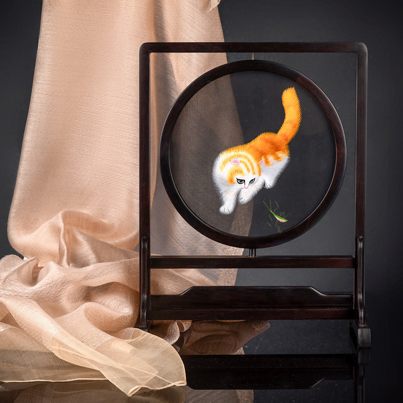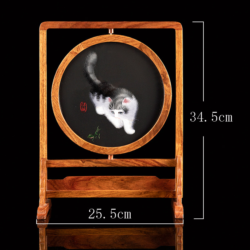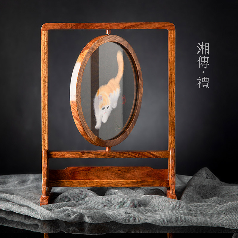 Xiangchuan original pure handmade double-sided embroidery cross-sided embroidery Ya rosewood ornament double-sided table screen embroidery gift Xiang embroidery