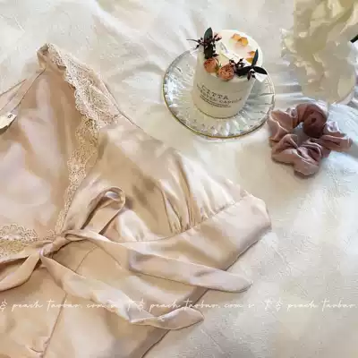 (S T) Ulysses court nightgown thin long sleeve silk sexy lace-up bow retro home wear