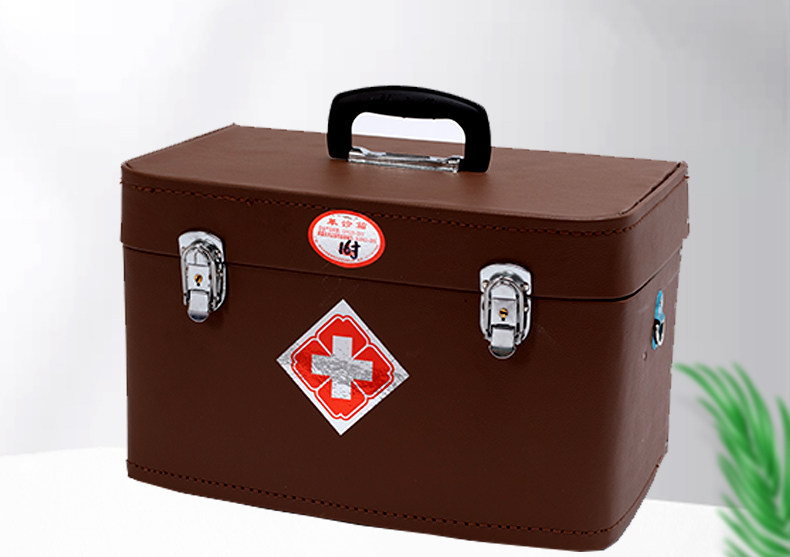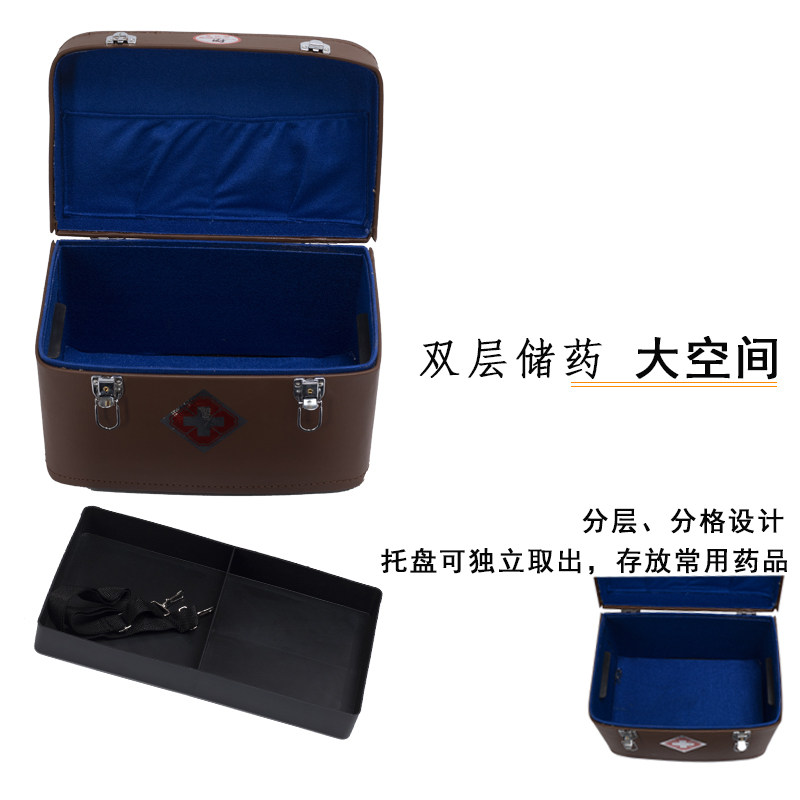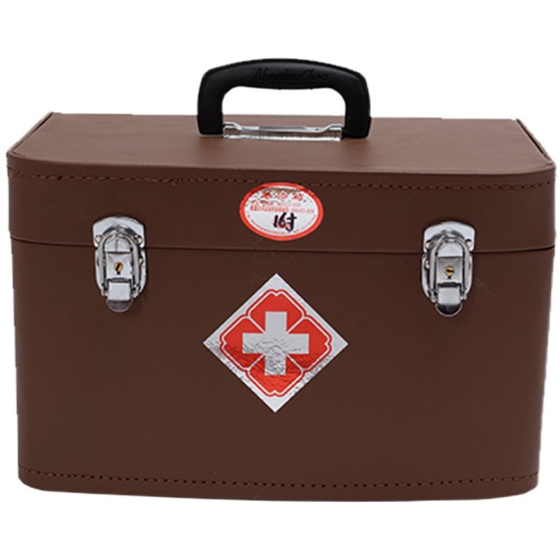 Large leather medicine box visiting box first aid animal small medical old medicine box performance leather storage household 16-inch bag