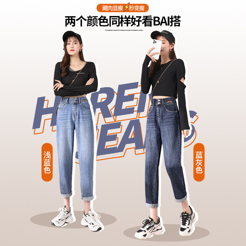 Harem jeans women's straight loose spring and autumn clothes 2021 new high-waist slim nine-point radish daddy pants