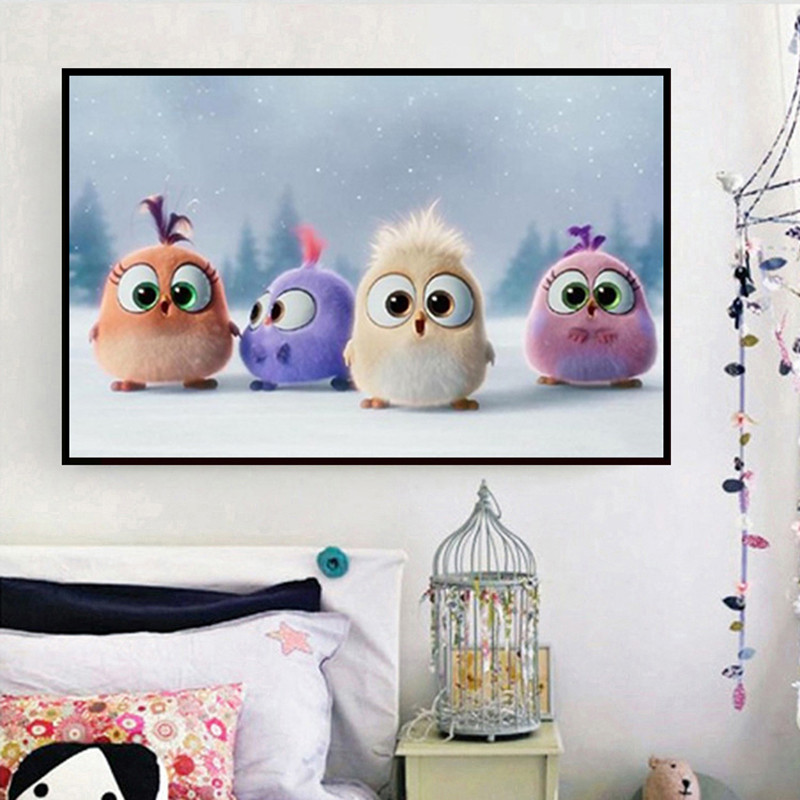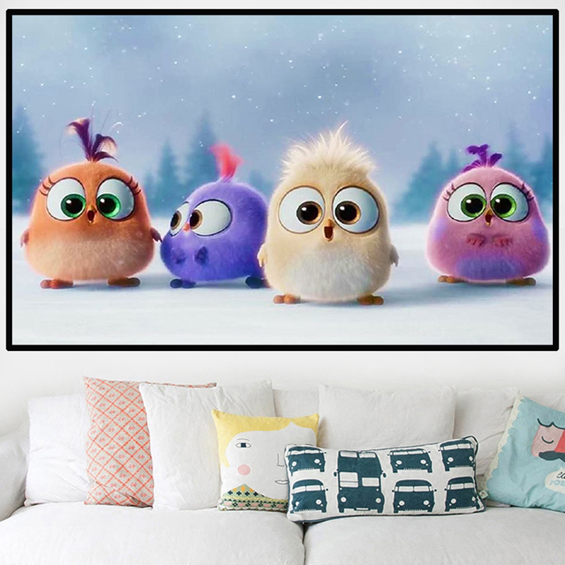 Stay Cute Little Bird Cross Embroidered New Cartoon Cartoon Living Room Bedroom Children Room Small Simple Large Cotton Thread Full Embroidered