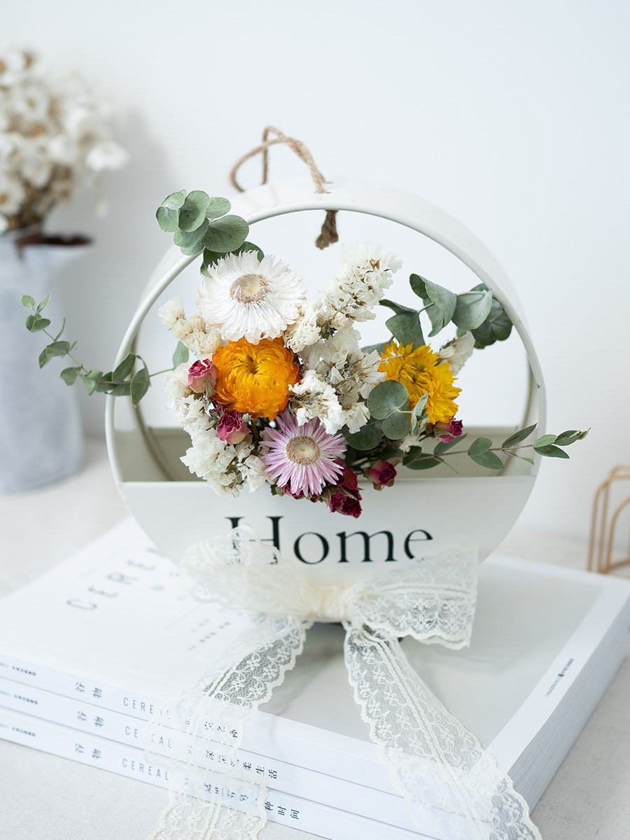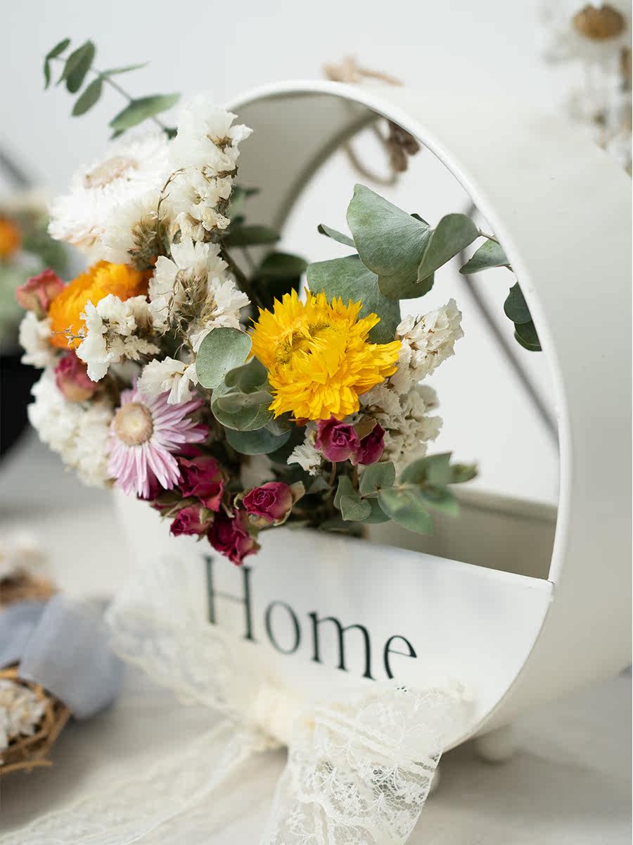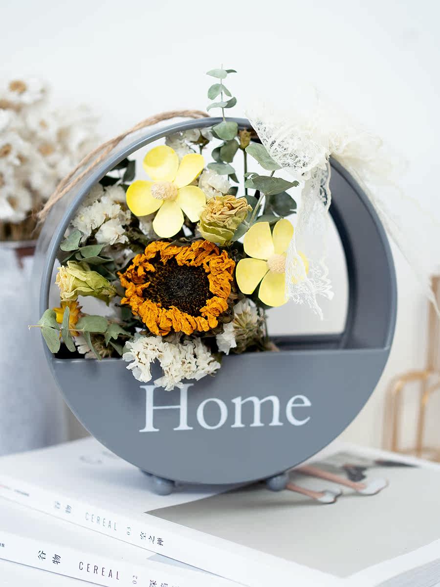 Wall Hanging Dry Flowers Bouquet Fresh Nordic Wind Iron Art House Decoration Wood Cotton Ugali Wall Decoration Shooting Props