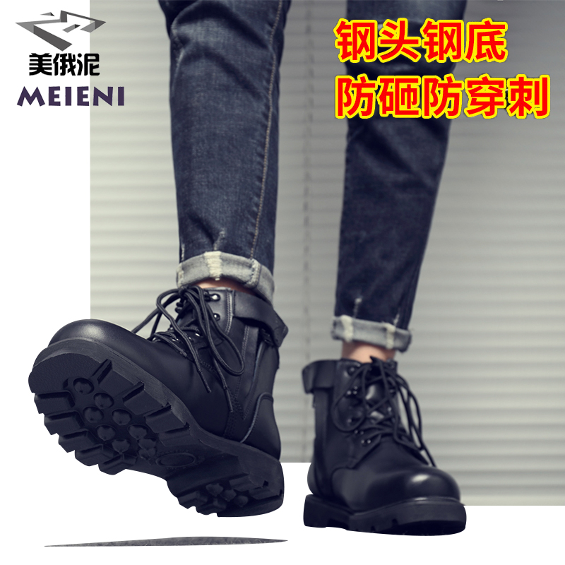 Snow boot male high cylinder genuine leather Inlenty wind Martin boots security shoes on duty winter cold-proof garneled cotton boots combat shoes