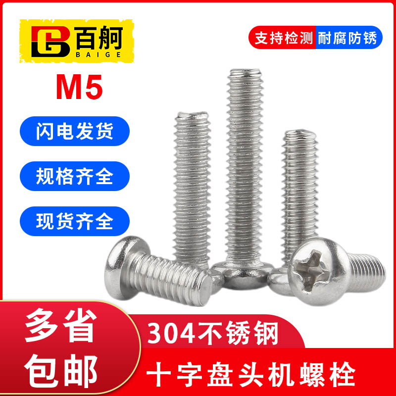 304 stainless steel cross disc head machine screws cross round head screws M5 national standard cross machine screws