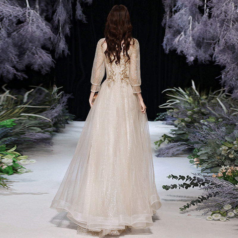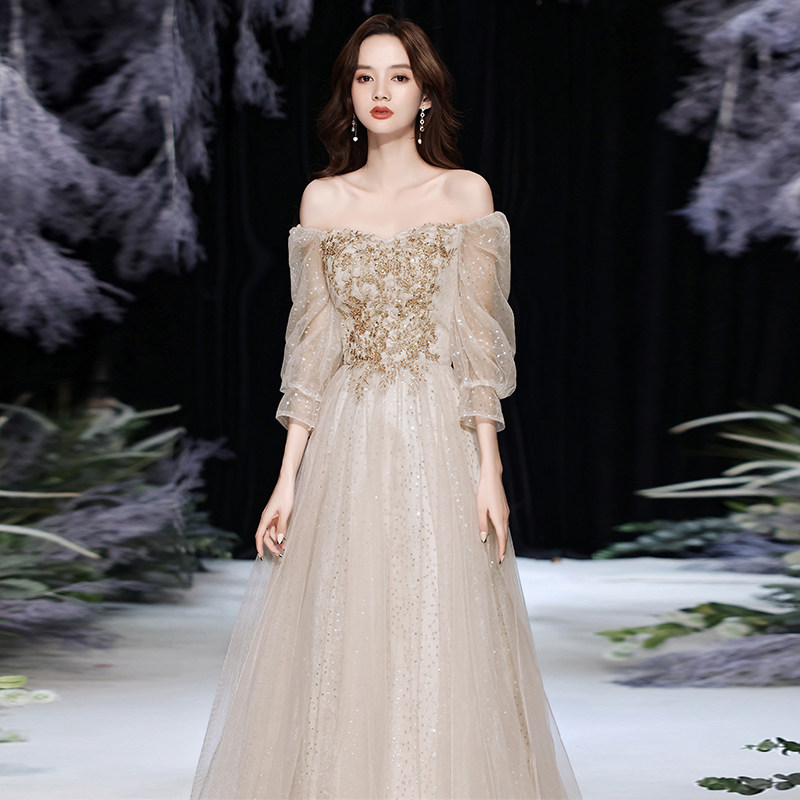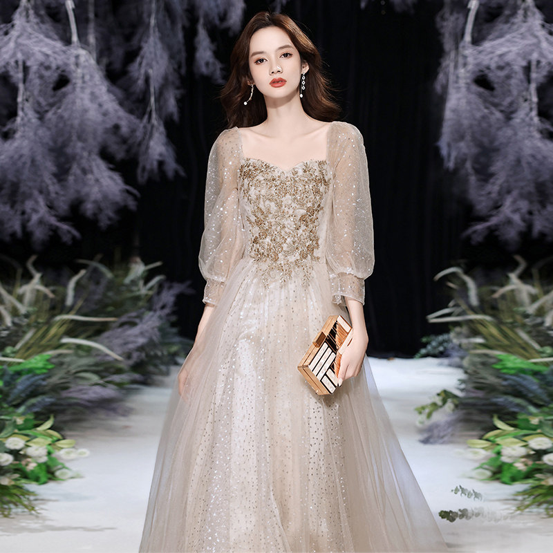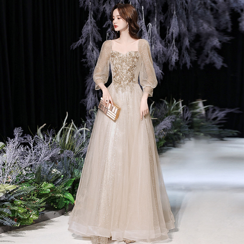 High-end banquet evening dress skirt 2022 new temperament champagne fairy air niche light luxury high-end performance female
