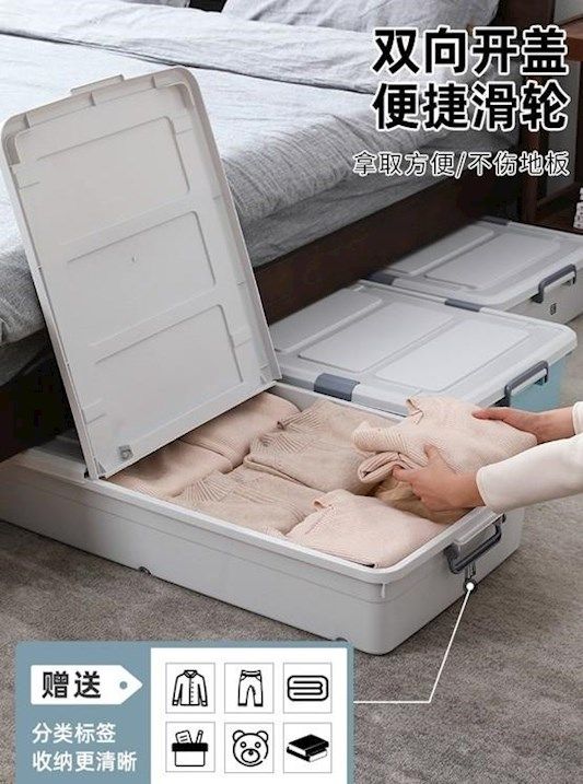 Under the bed storage box flat storage box under the bed rectangular sofa bottom storage box space-saving bottom with wheels - Taobao