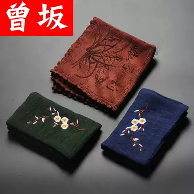 Plum blossom embroidery tea towel Blue cotton and linen plum blossom tea towel Dark green Plum blossom embroidery tea towel Red plum blossom basket black tea towel Two packs