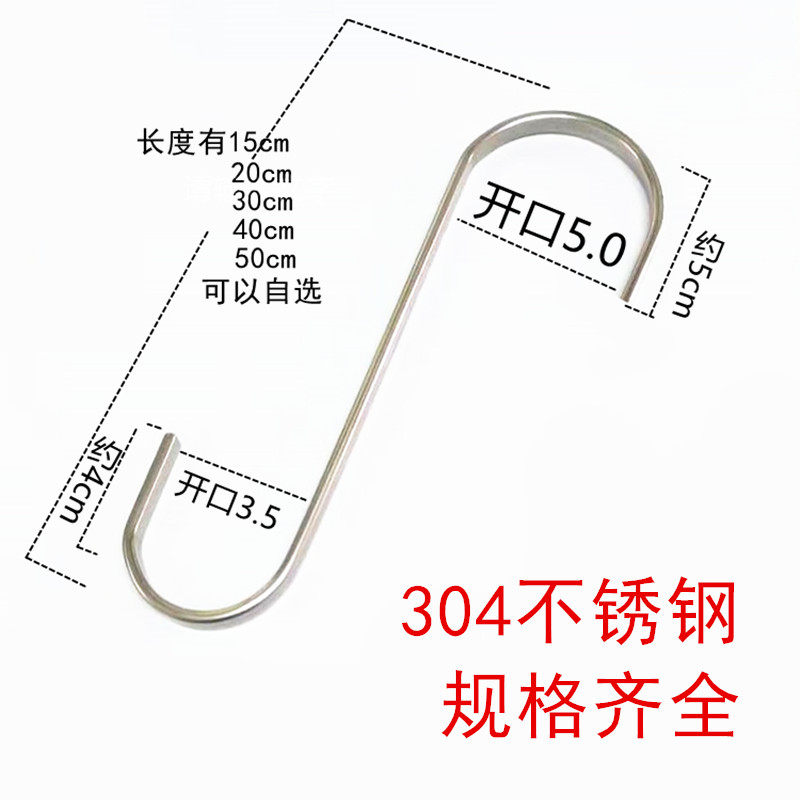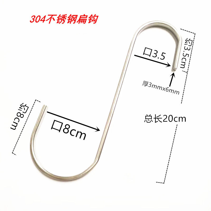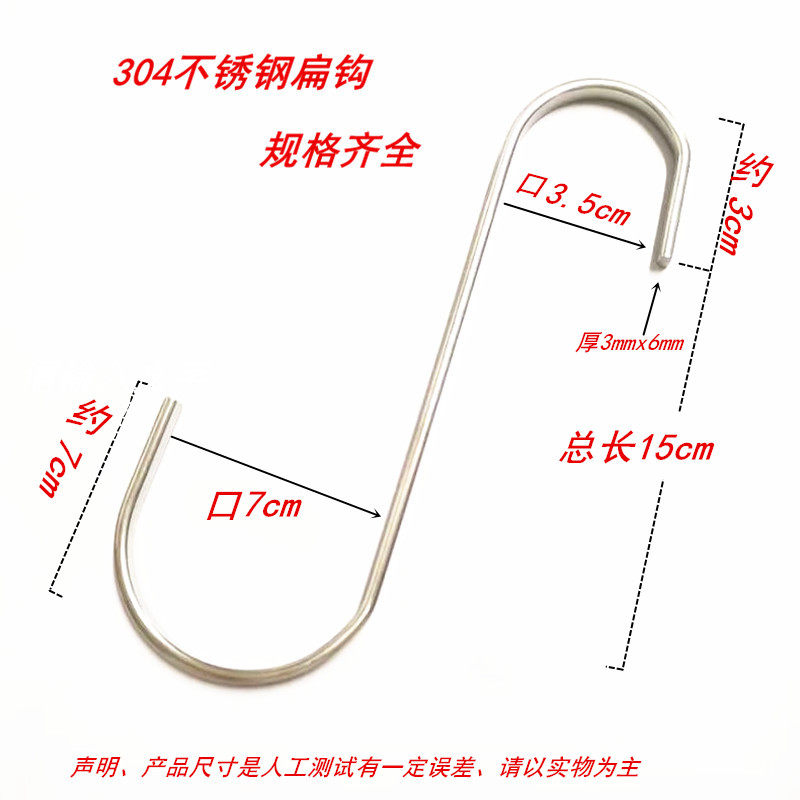 Solid 304 stainless steel s-shaped hook clothes hook plus raised opening Flat S Type Kitchen Shelve Clothing Shop Hook Direct Sale
