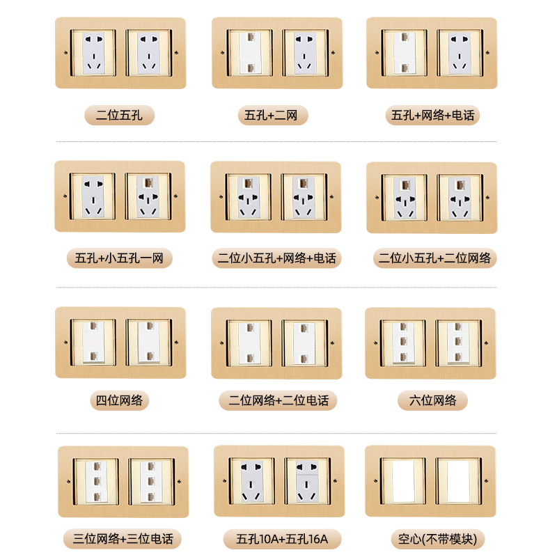Double-link body double door concealed ground socket full copper waterproof ground socket 5-hole Internet computer phone