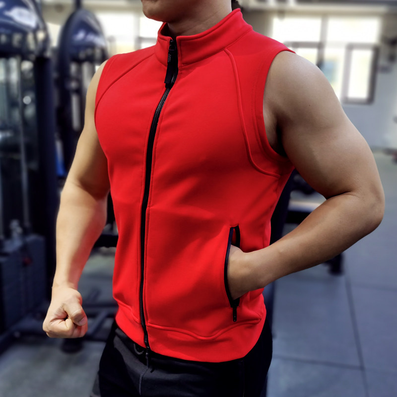 Sports plus velvet vest men autumn winter outdoor running slim collar zipper shoulder fitness coach suit group customization