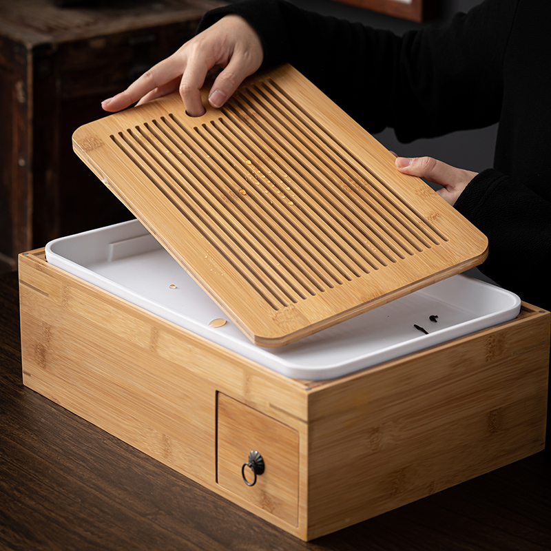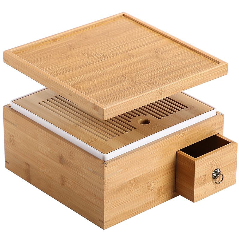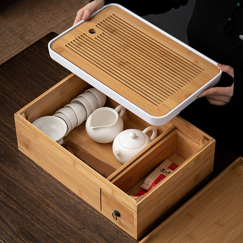 Kung Fu tea set set household ceramic teapot tea cup Japanese dry bubble water storage tea tray multifunctional bamboo storage box