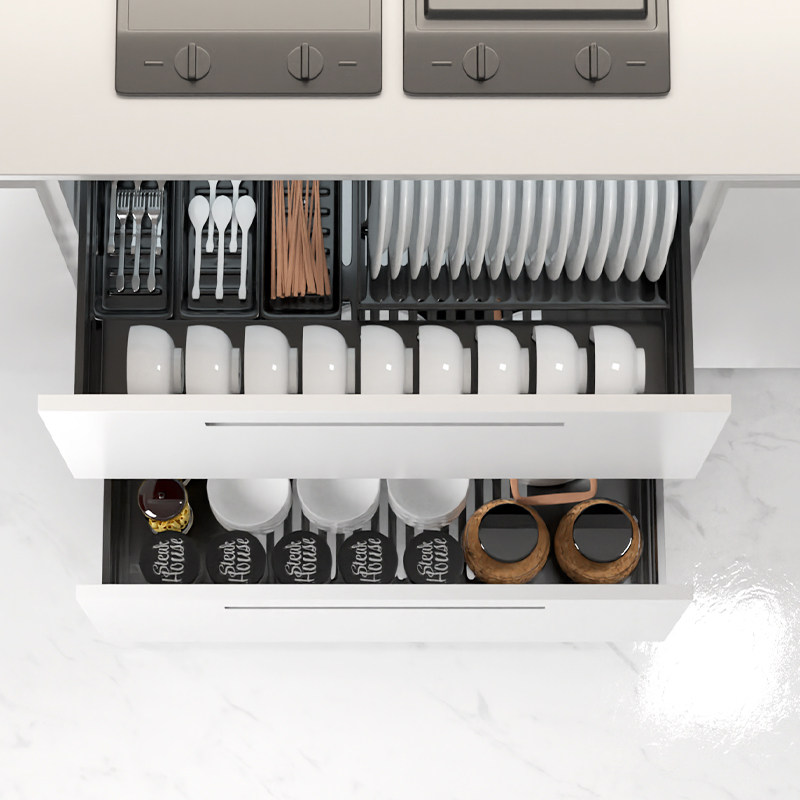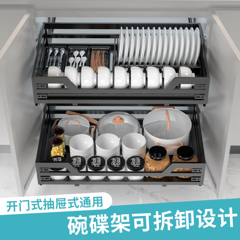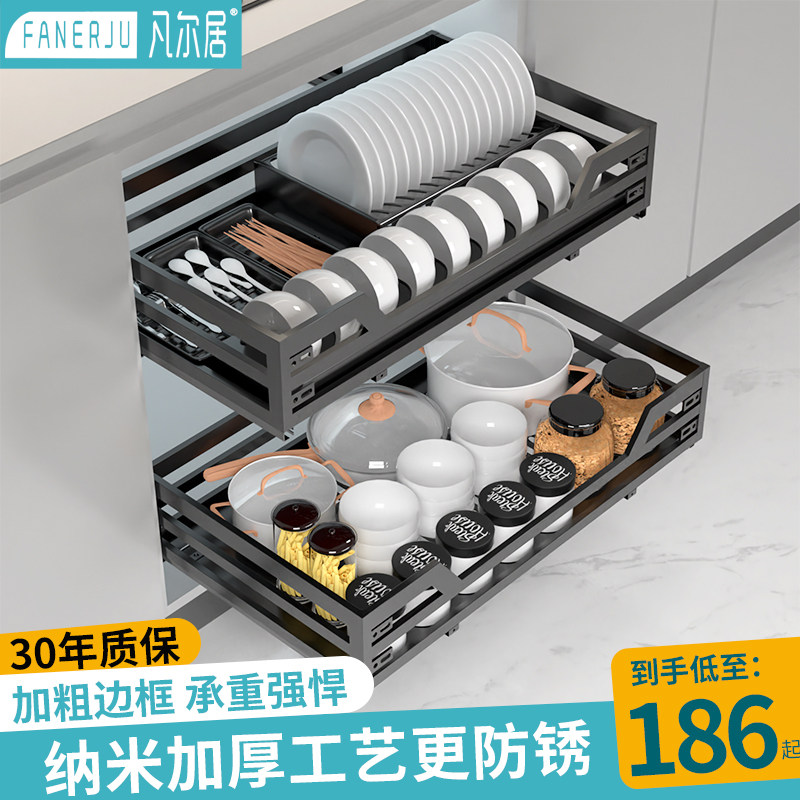 Nano black pull basket kitchen cabinet 304 stainless steel double drawer type seasoning cabinet storage storage bowl rack