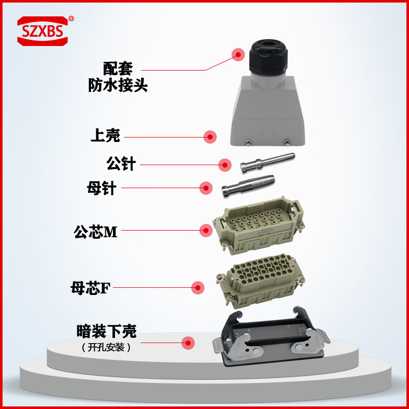 Heavy-duty connector 32-core HEE-032-01M F hot runner cold crimp connector distance-shaped aviation plug 16A