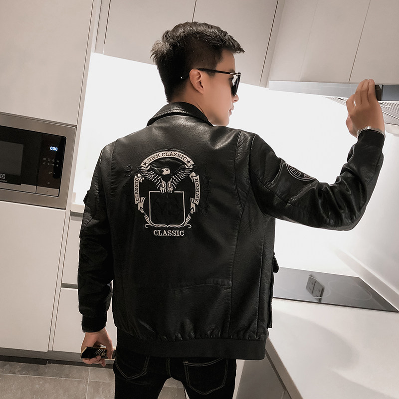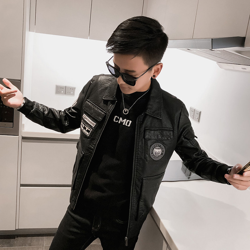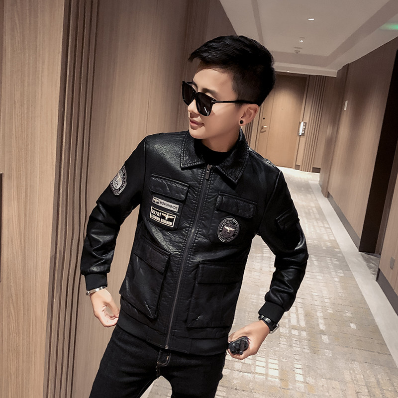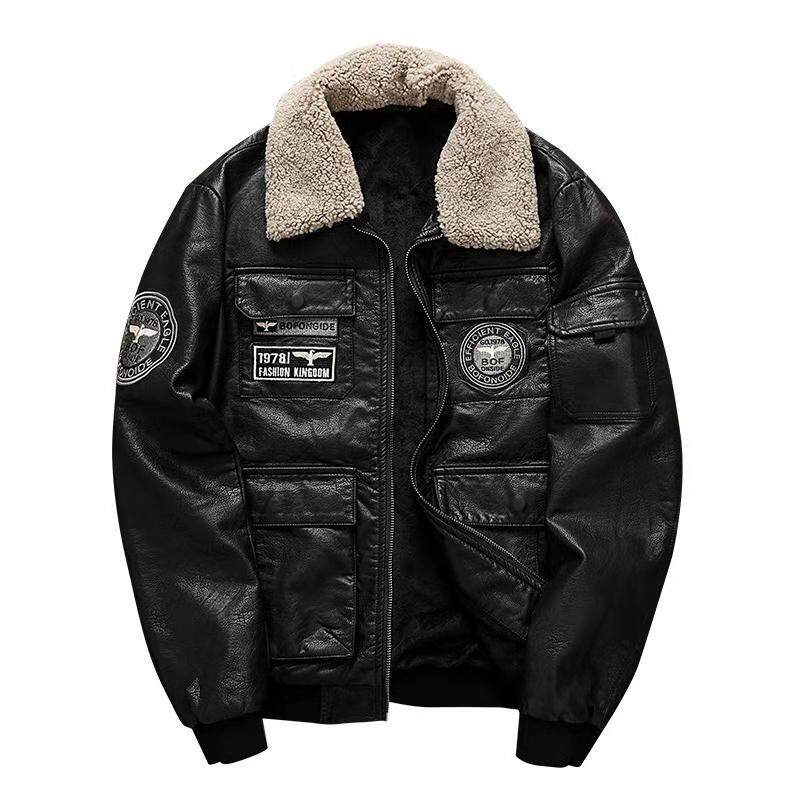 Pilot's leather jacket man plus thicken Han edition trend locomotive soft leather jacket spirit lad Mao collar winter coat