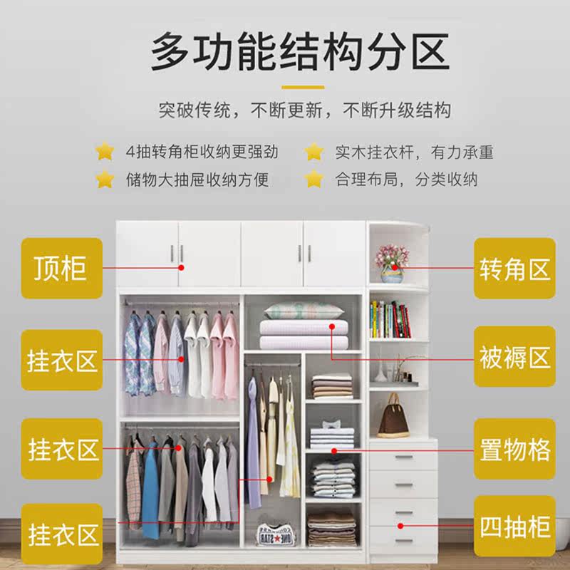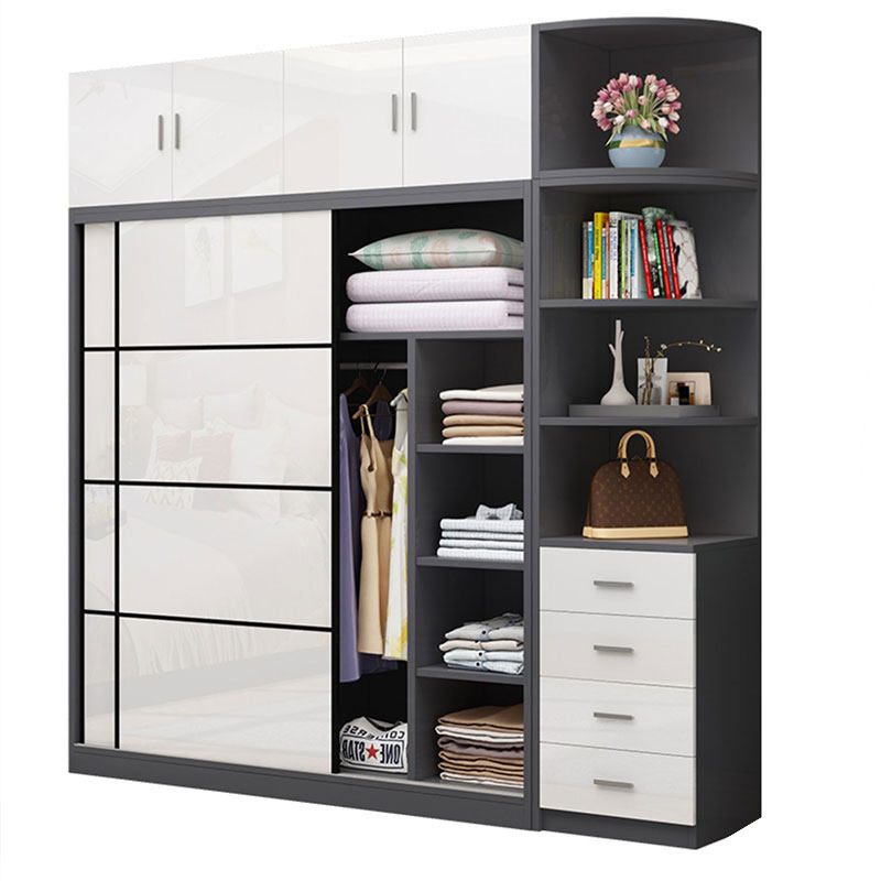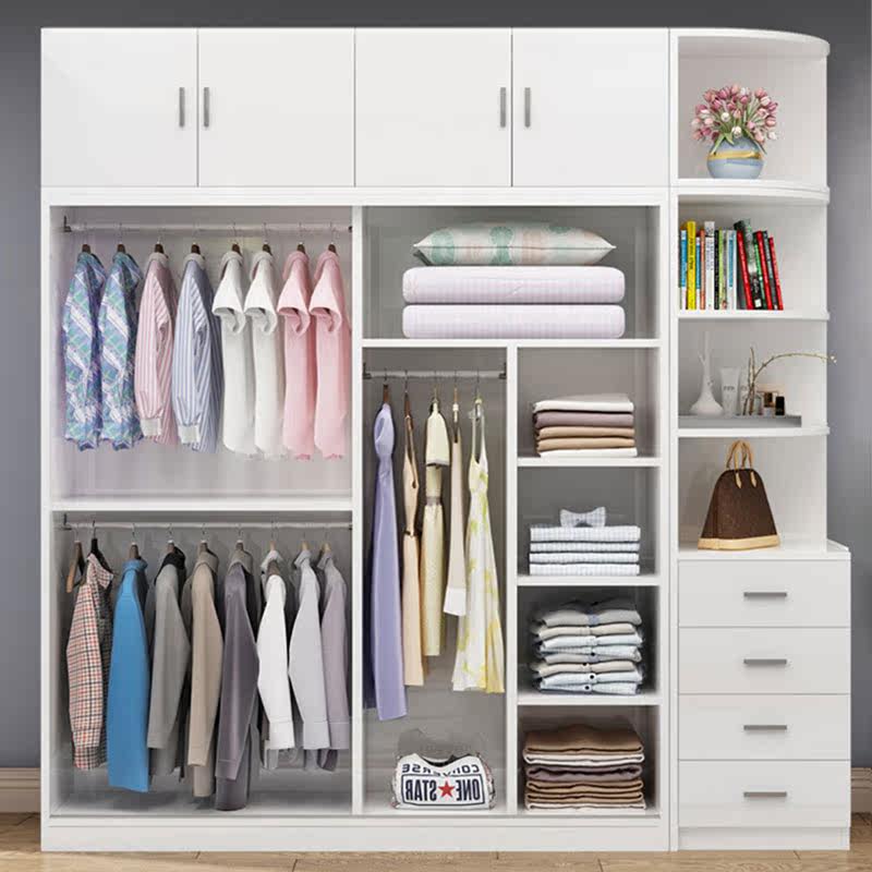 Wardrobe Home Bedroom Modern Simple Sliding Door Solid Wood Storage Cabinet Economical Simple Wardrobe for Rental House