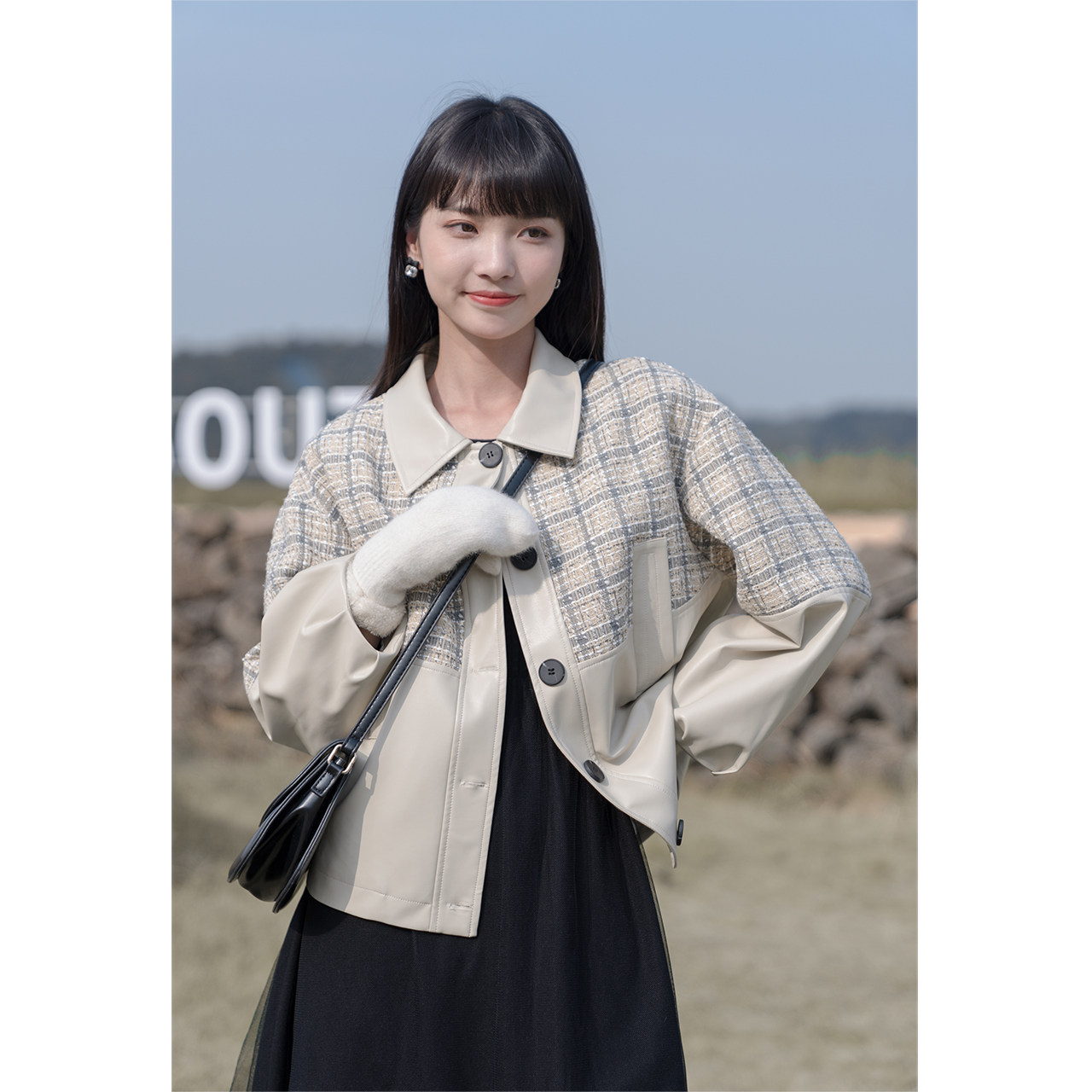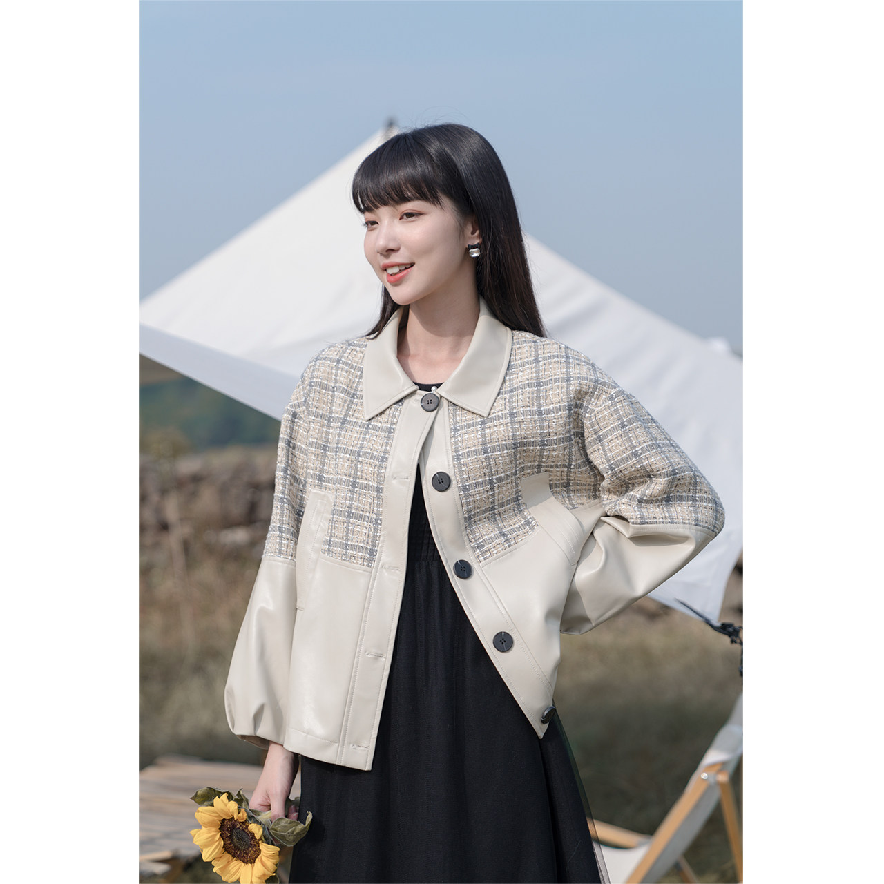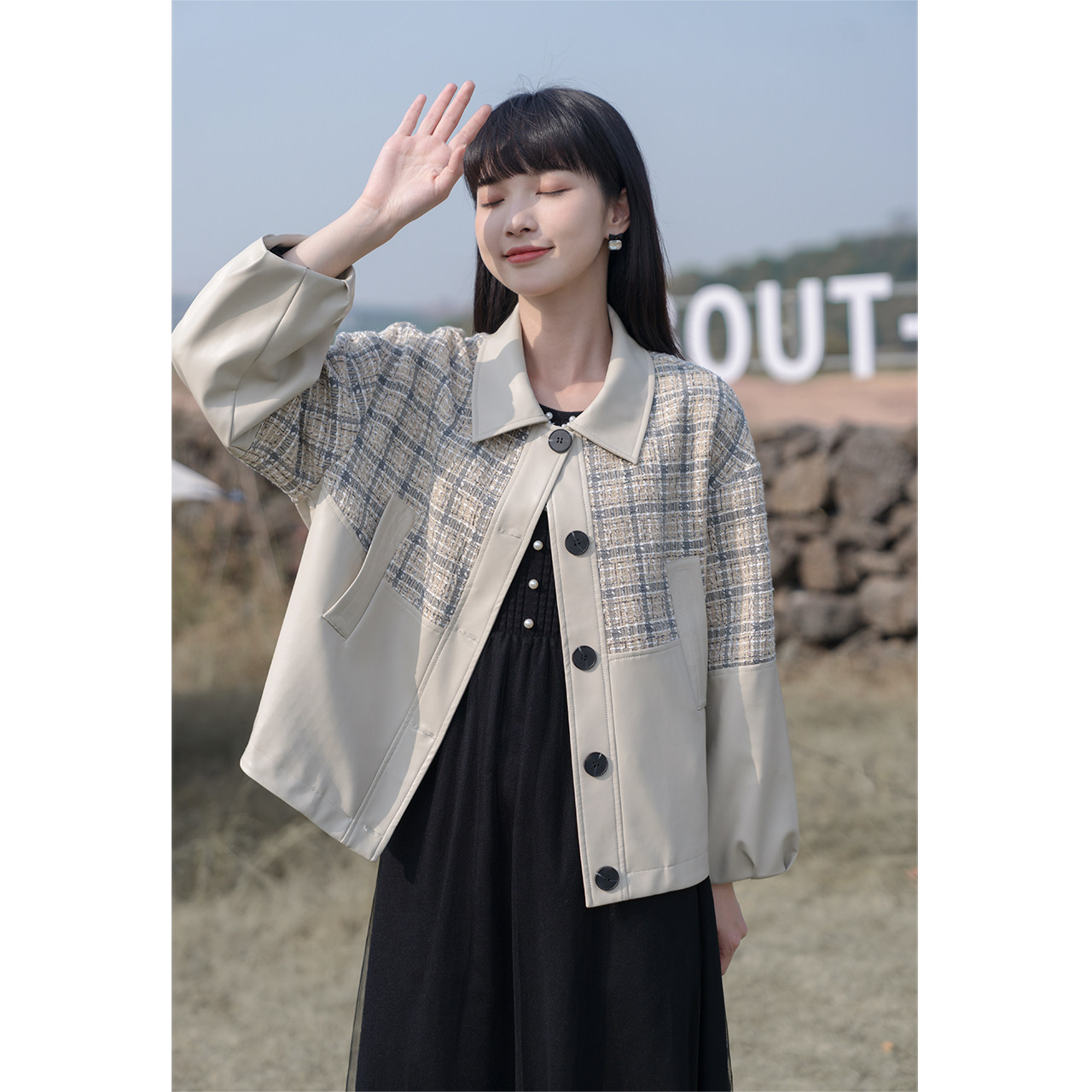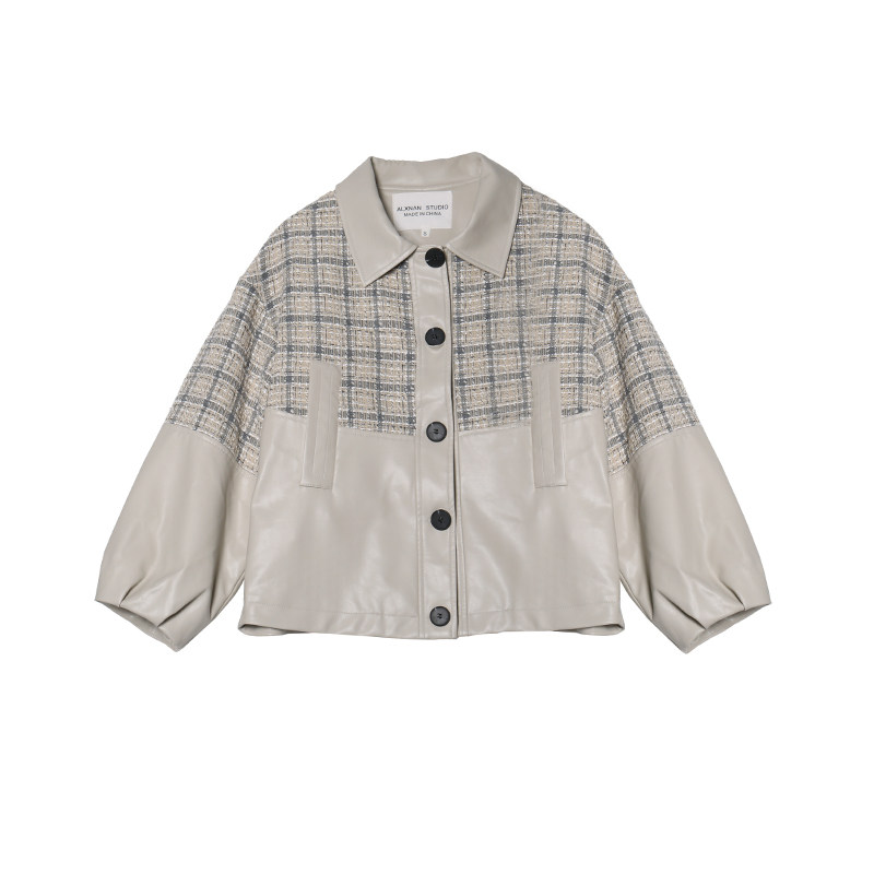 Deer to the south Apricot stitching leather jacket women's 2022 autumn new trend fashion Korean version of the short leather jacket