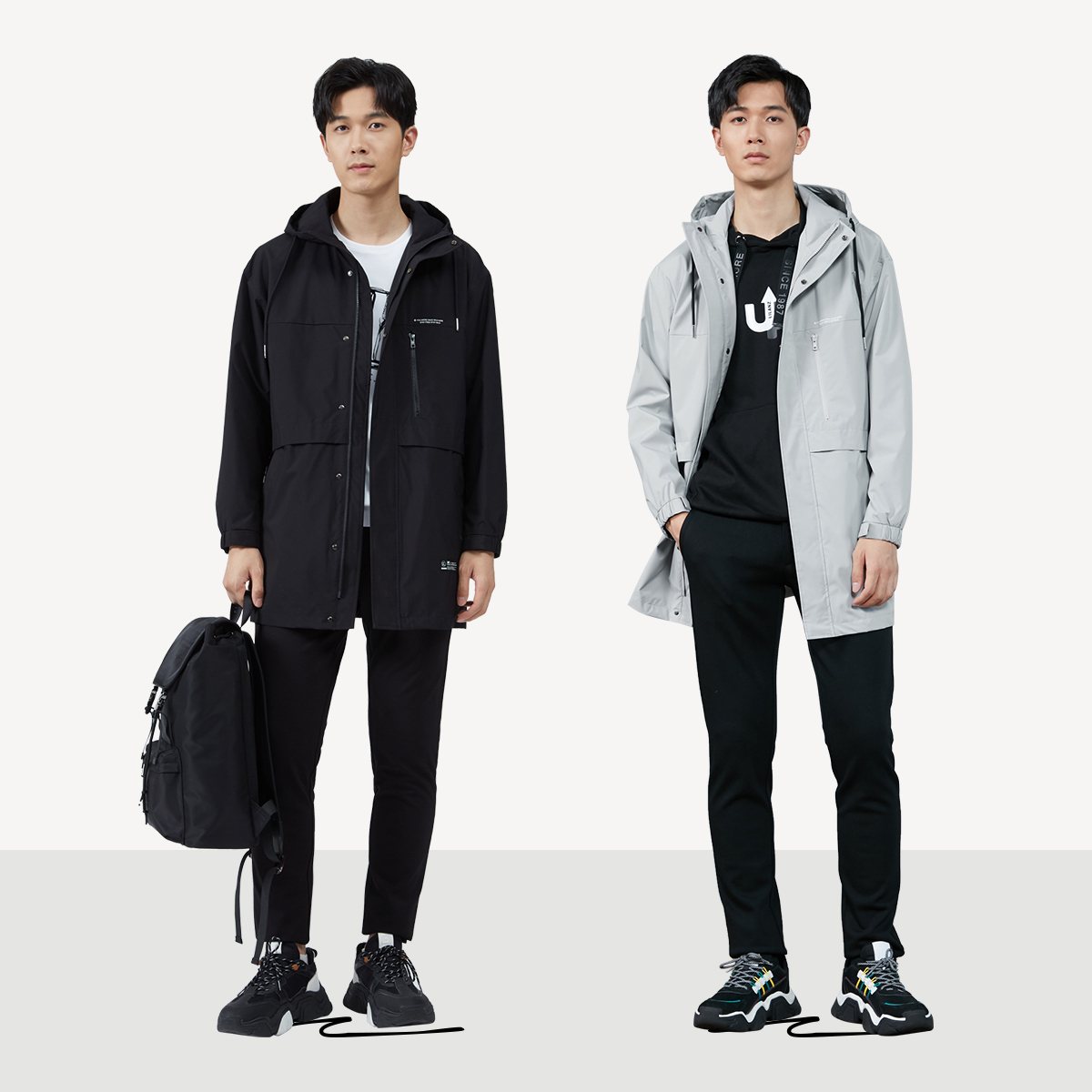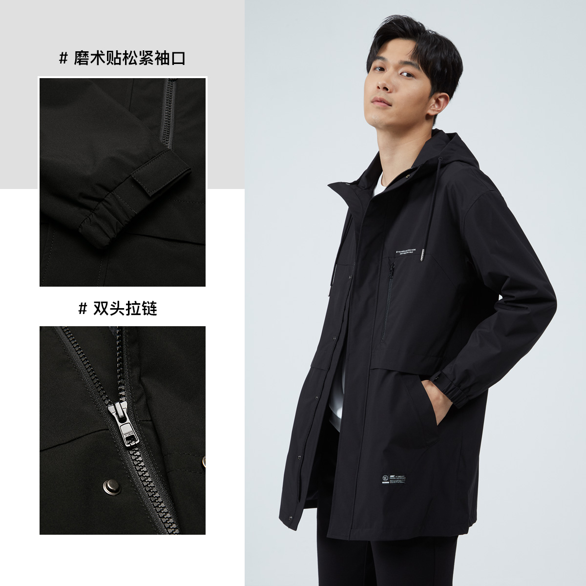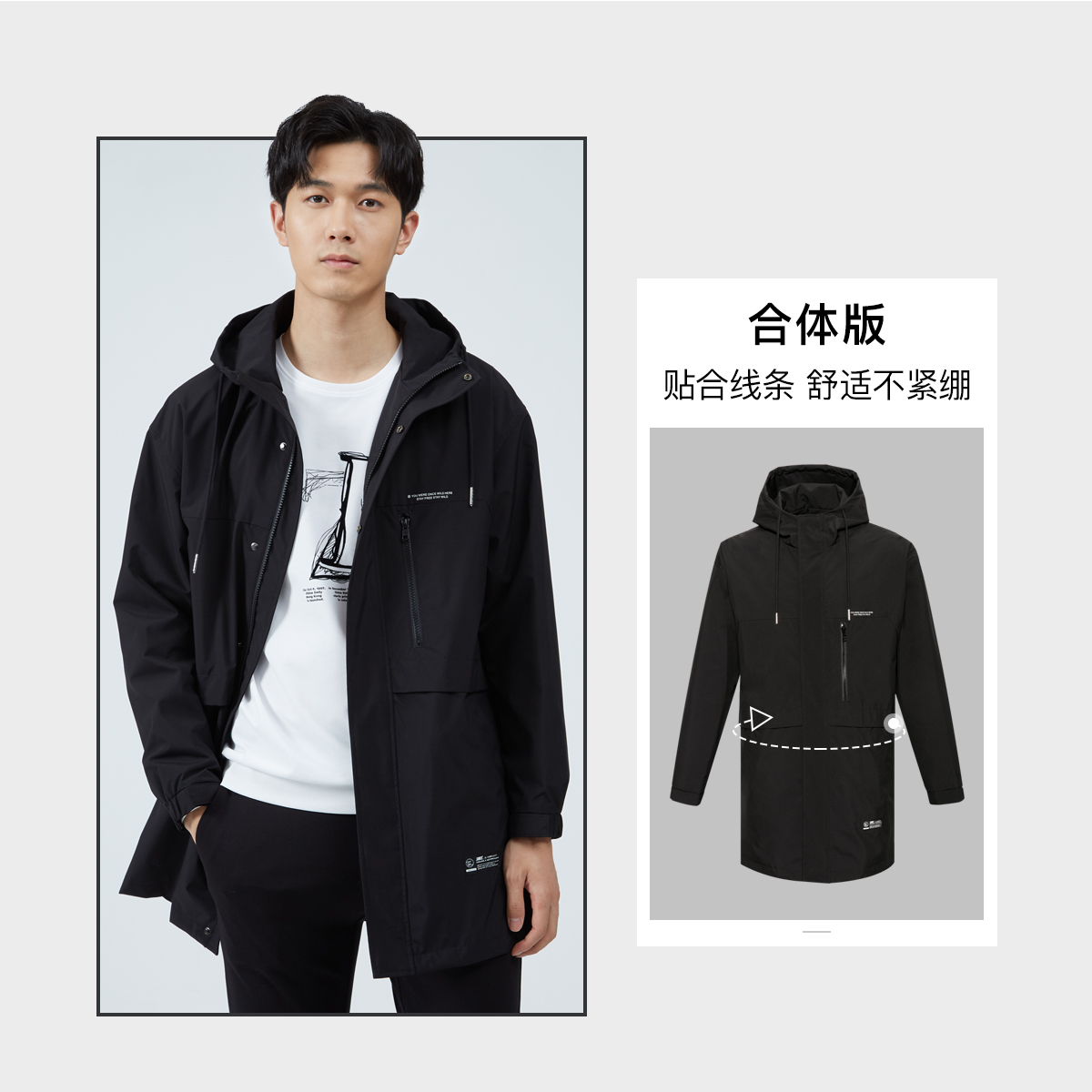Lilanz official windbreaker men's trend hooded drawstring solid color 2021 spring Harbor style handsome medium-long jacket men