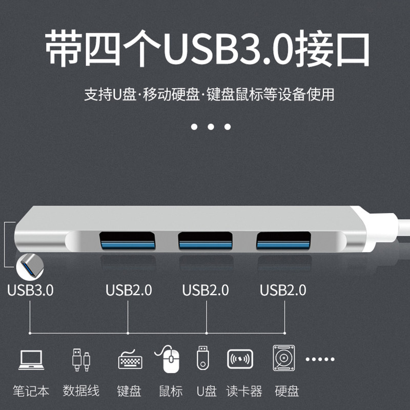 USB connector (quad-mouth simultaneous extension) usb3 0 speed transport (grey) type-c connector (four-port simultaneous extension) usb3 0 High speed transmission (grey) U