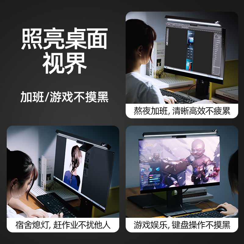 Monitor eye protector hanging light (three-tone light) black ★ aluminum alloy laptop eyeguard light (three-tone light) black