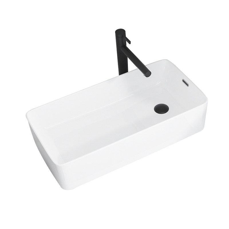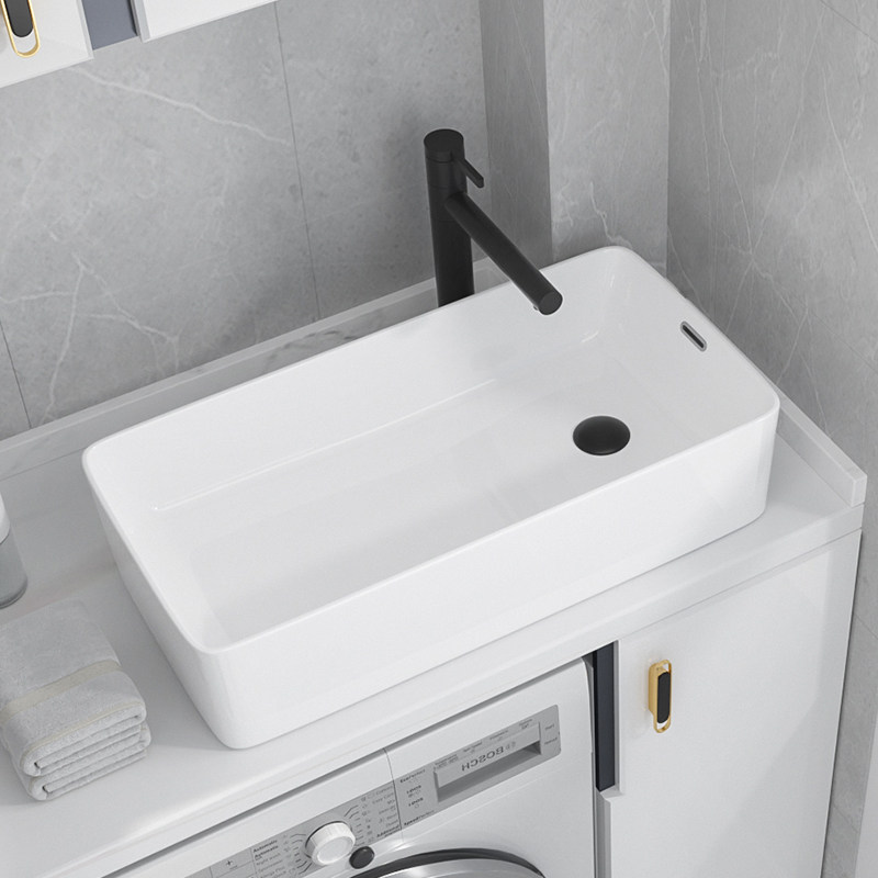 Side sink basin balcony ceramic wash basin with overflow hole basin side mouth powder room wash basin left and right