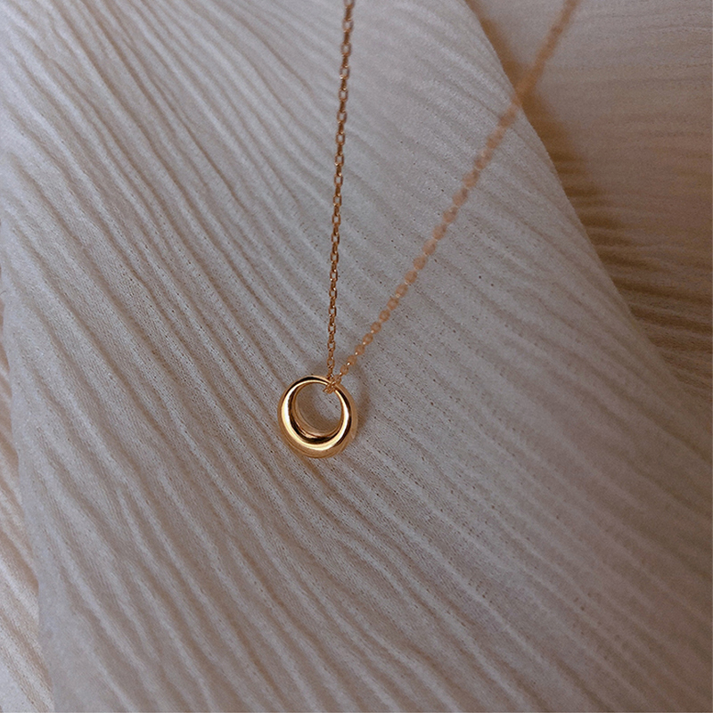 S925 sterling silver round ring necklace girls simple light luxury niche design sense temperament clavicle chain 2021 new summer