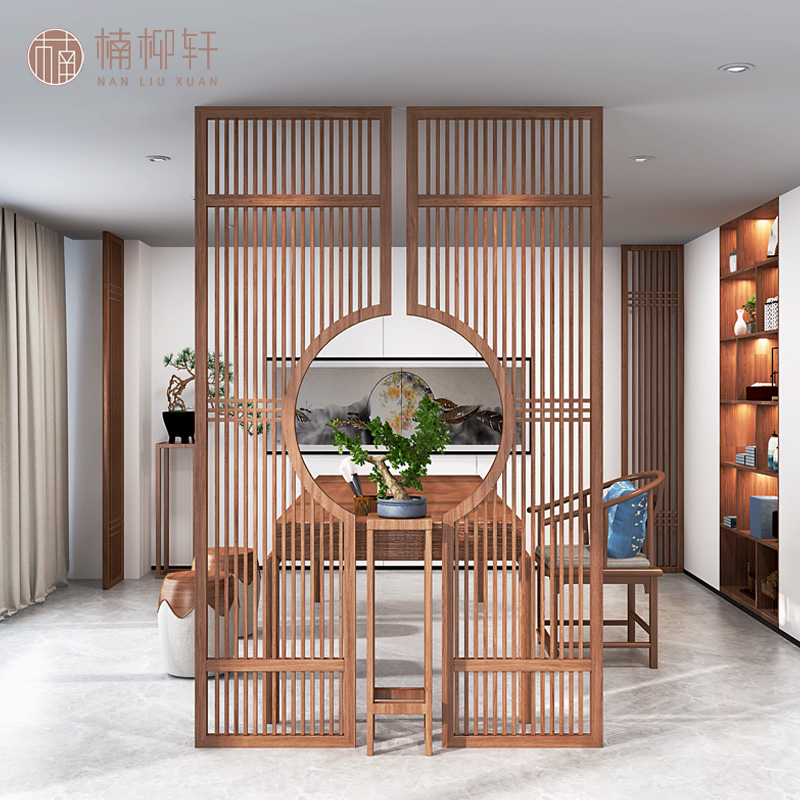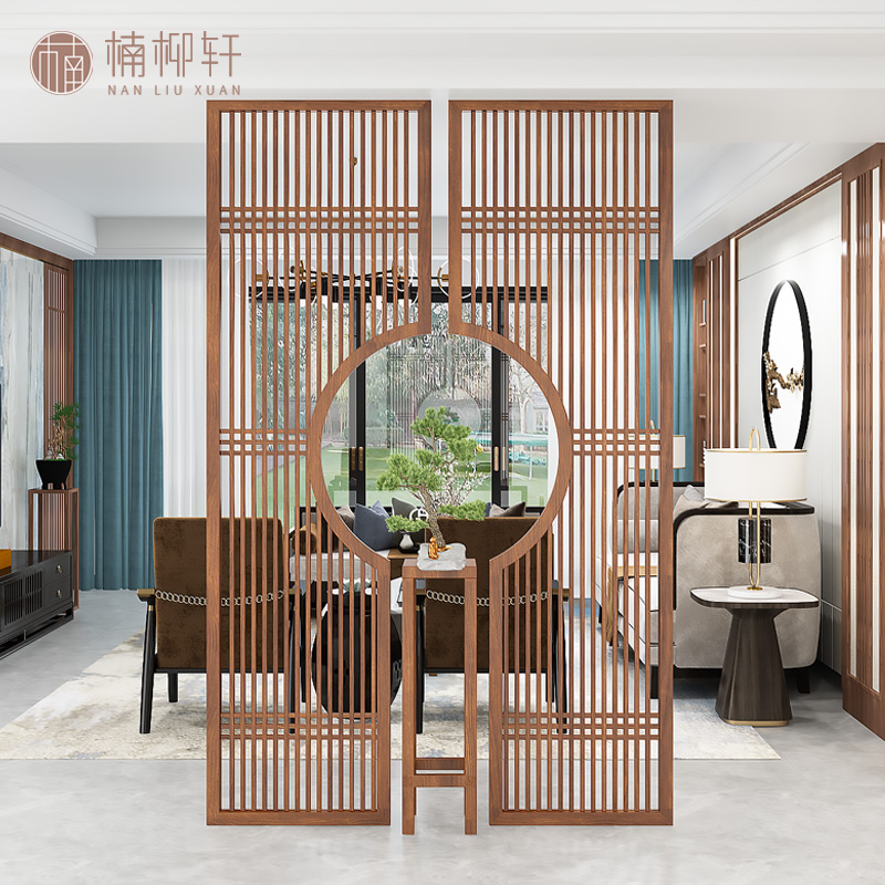 Chinese style screen partition wall Living room entrance door solid wood fence grid brake Hotel wear hall brake Hollow flower frame customization
