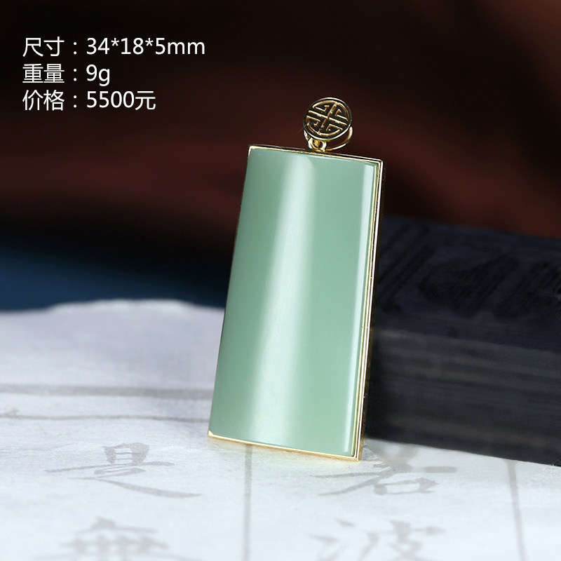Russian duck egg green gold inlaid jade jade green with no card pendant jade and jade pendant jade edge and Tian jade pendant 9g