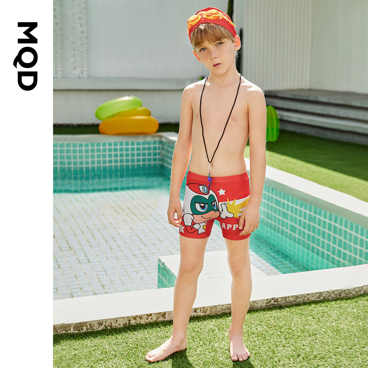 MQD children's clothing boys swimming trunks swimming cap suit 2021 new swimsuit children's Korean version of the competition training boxer shorts