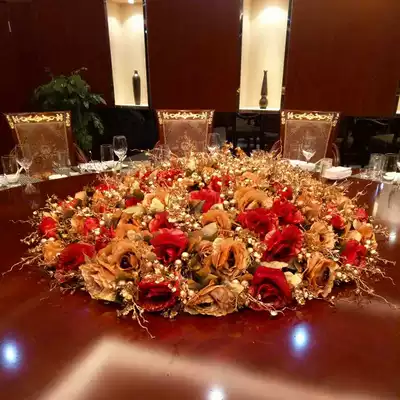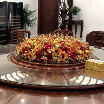 European-style dining table flower flower arrangement hotel large round table decoration flower round table flower fake flower turntable decoration simulation silk flower