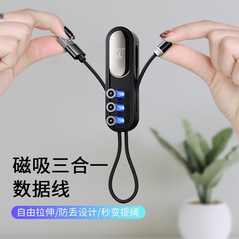 One touch charging fast charging sliding cover free stretch data line Piano magnetic attraction three-in-one portable data line